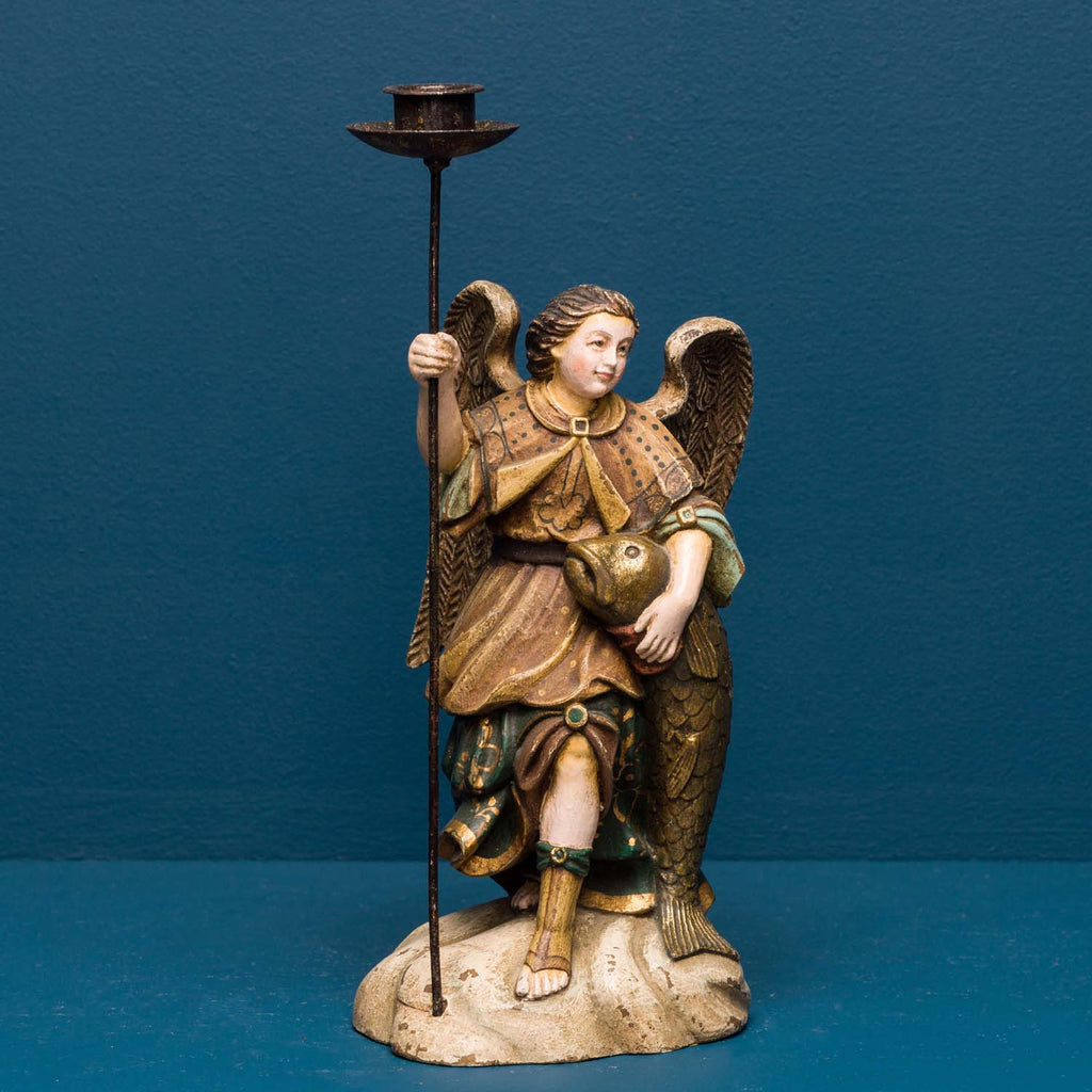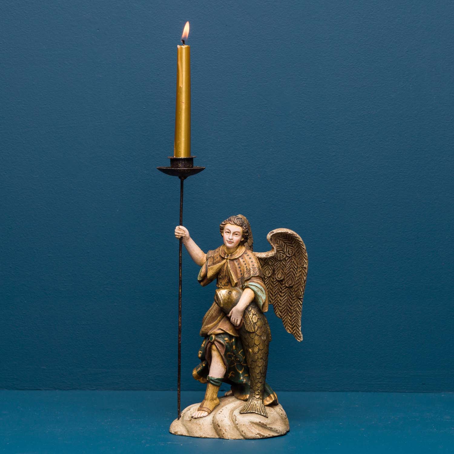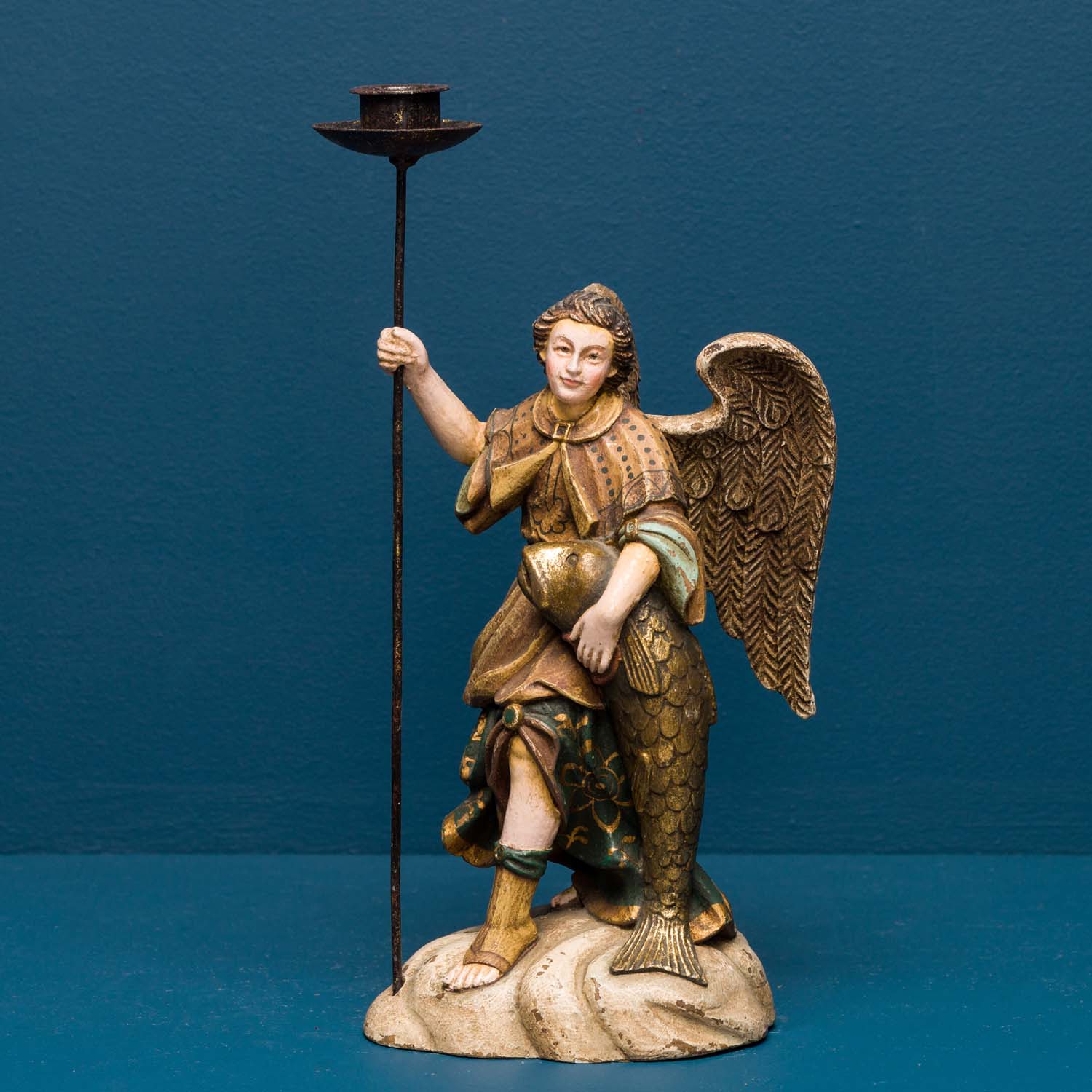 ANGEL RAPHAEL WITH FISH CANDLE HOLDER