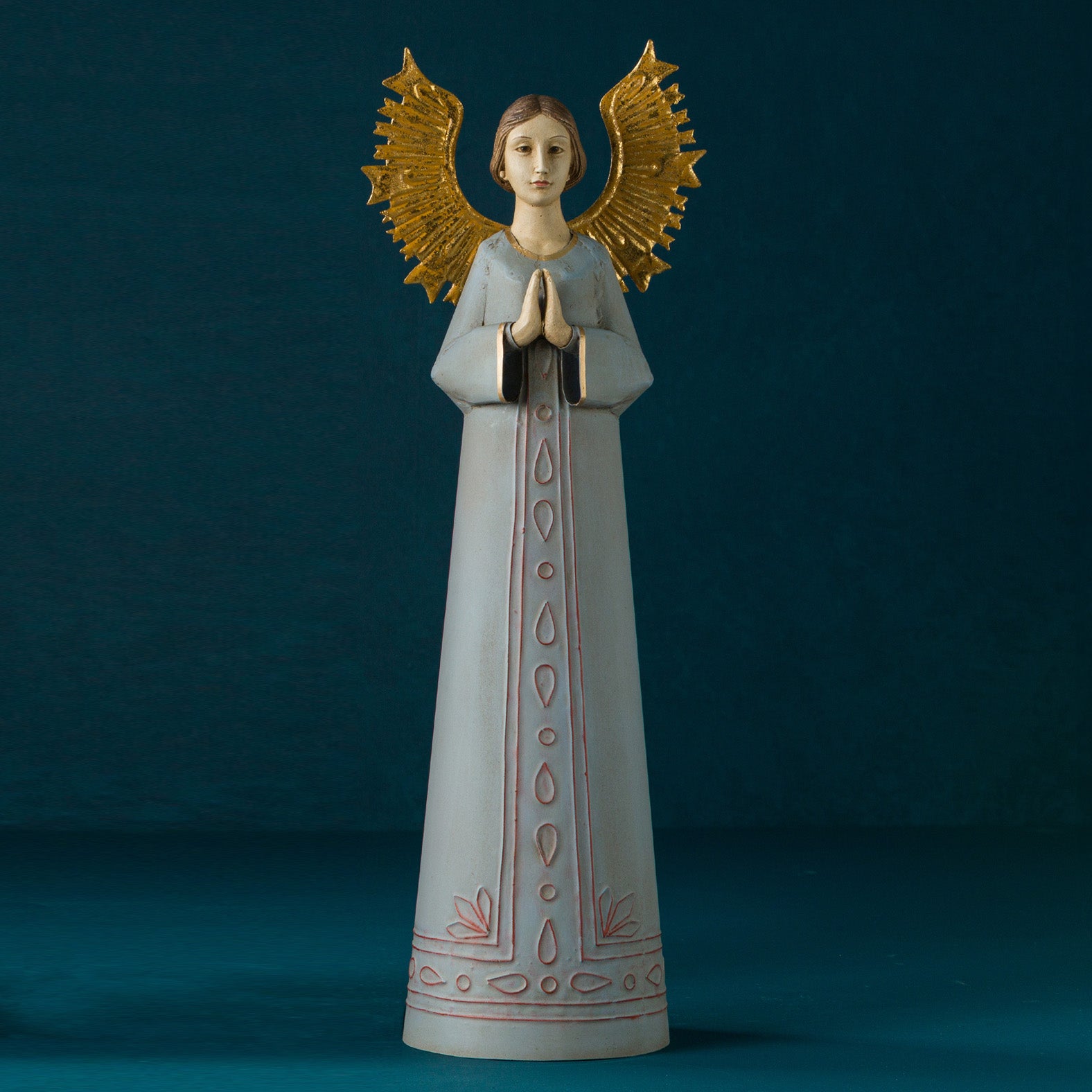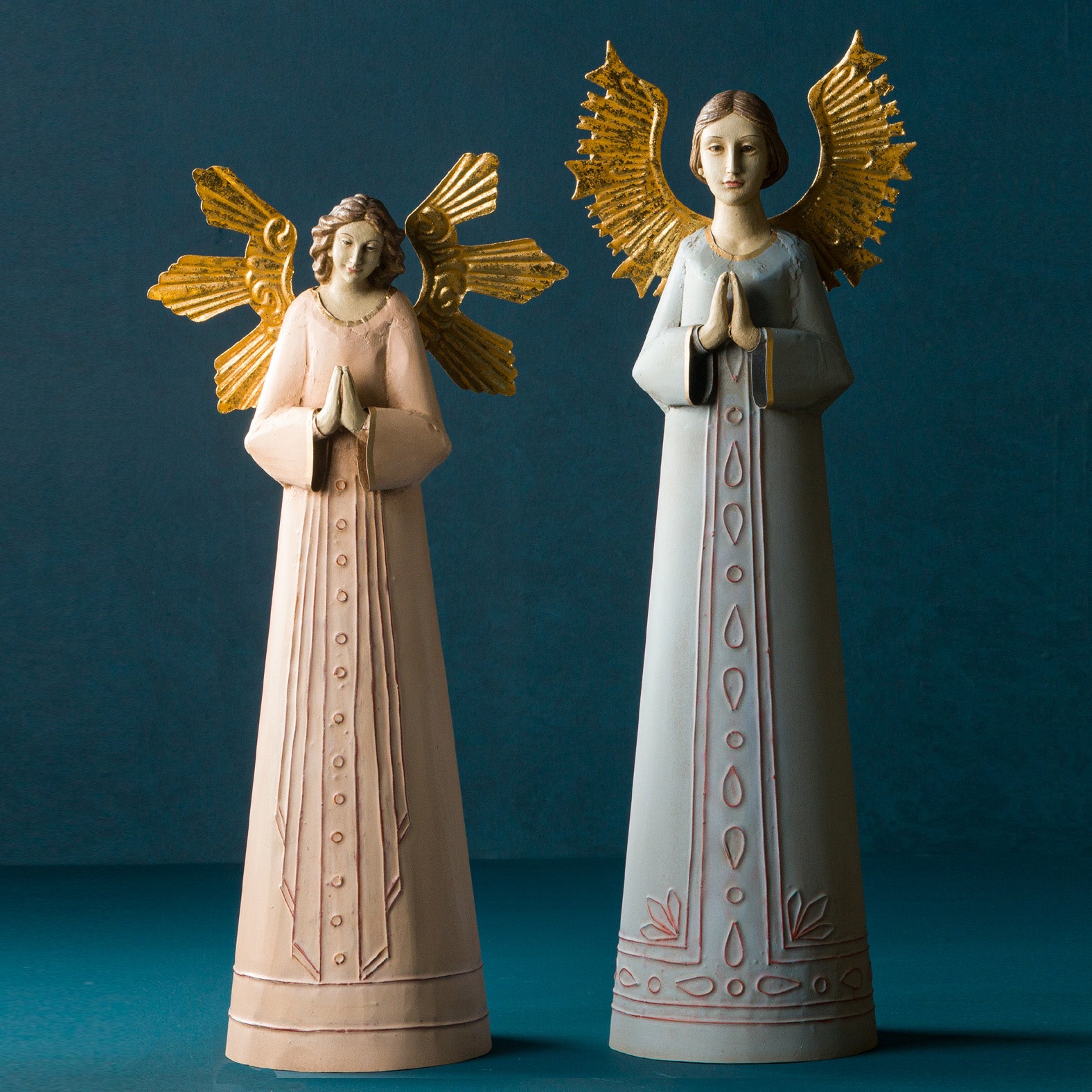 AVERNA MARIANNE ANGEL - 6.50"L x 5"W x 18.50"H / Blue Gold Beige / Hand embossed metal with resin accents is backordered and will ship as soon as it is back in stock.
