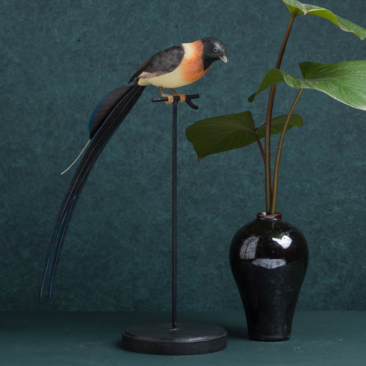 Hand carved wood with metal accents