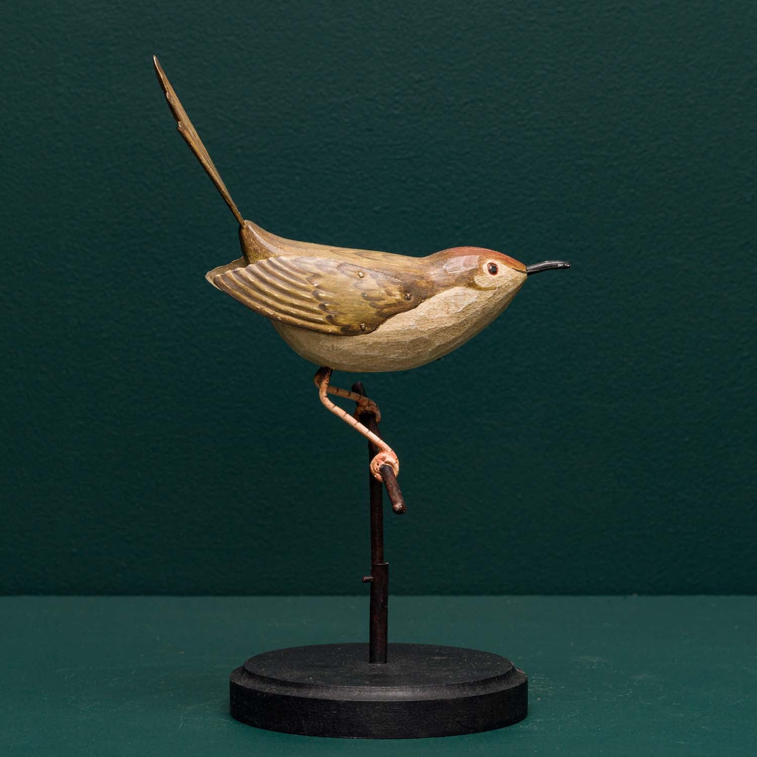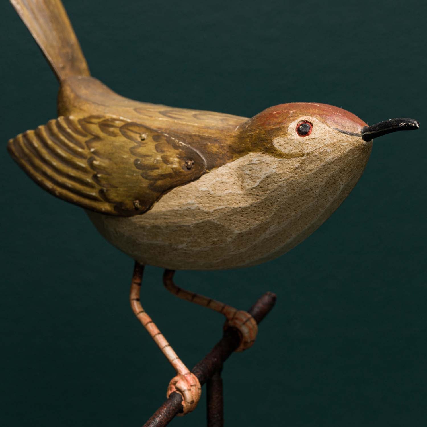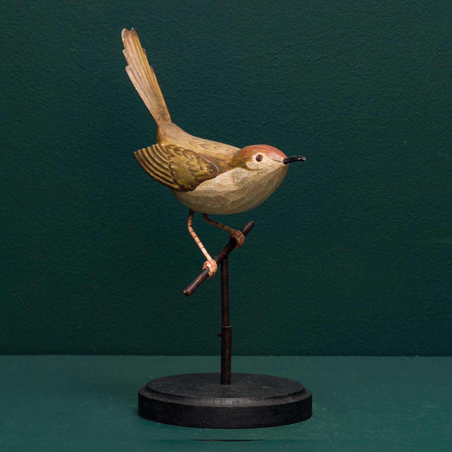 Hand carved wood with metal accents