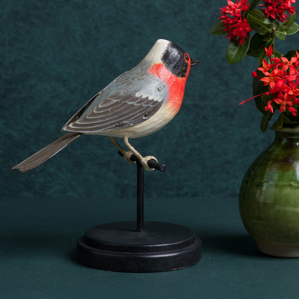 Add a pop of color and visual interest to your desktop or shelf with this pretty bird. An excellent gift for birders.