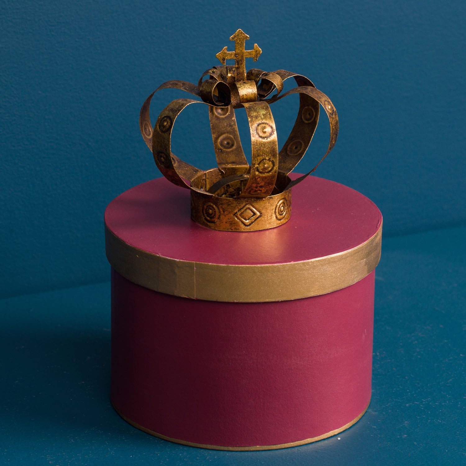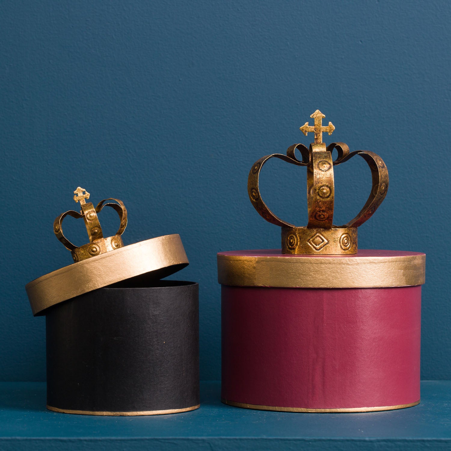 These crown papier mache boxes are a lovely way to present a gift. As a bonus the boxes can be saved and used as decorative storage pieces for jewelry, watches, small office accessories or other valuables.