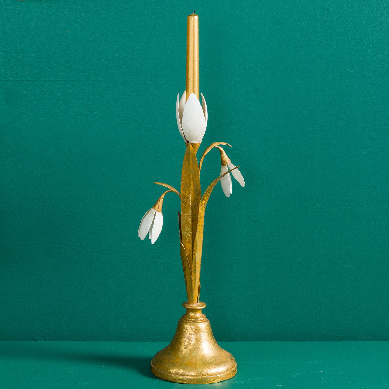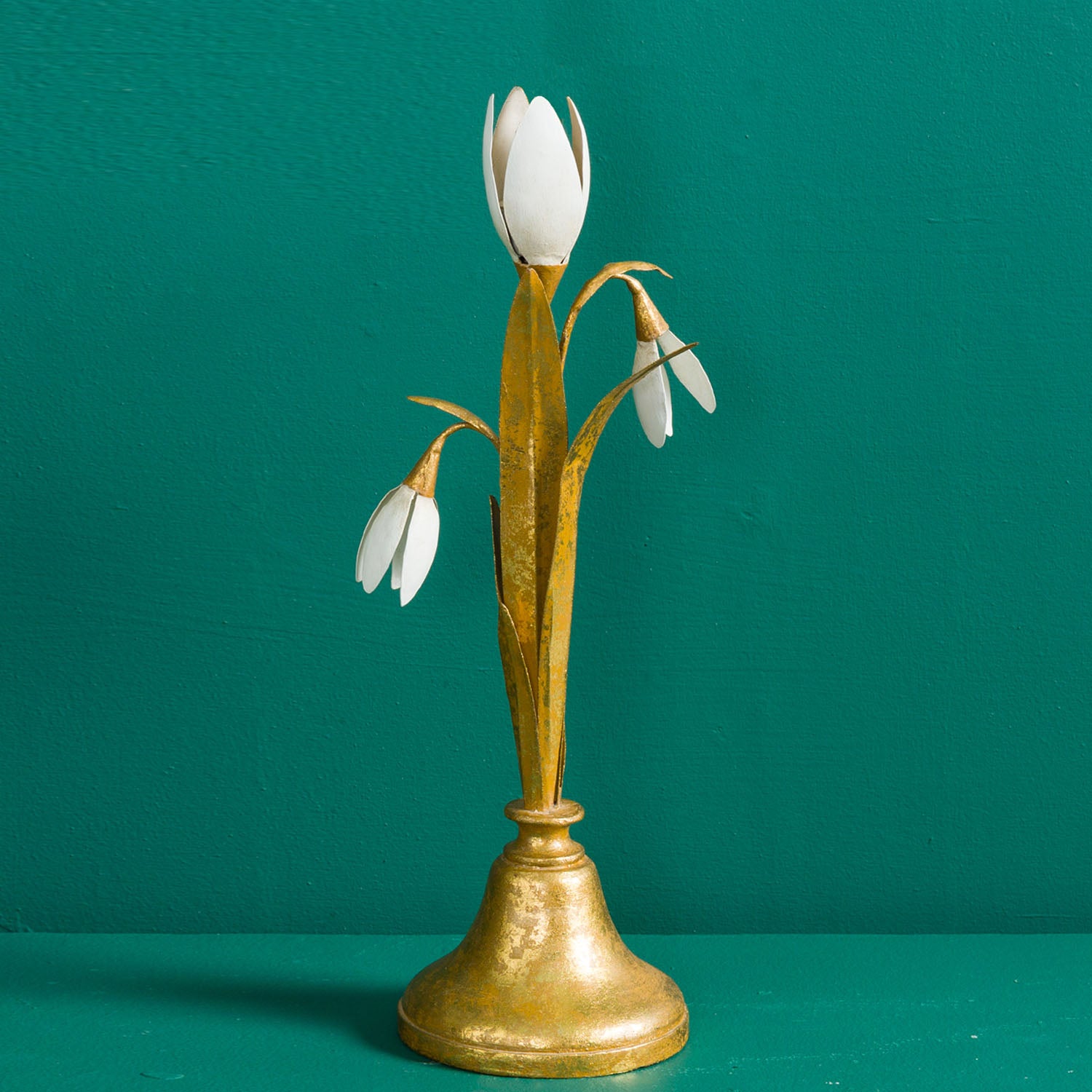 6"L X 4.25"W X 14"H / Handpainted - Gold and White / Hand embossed metal with resin accents