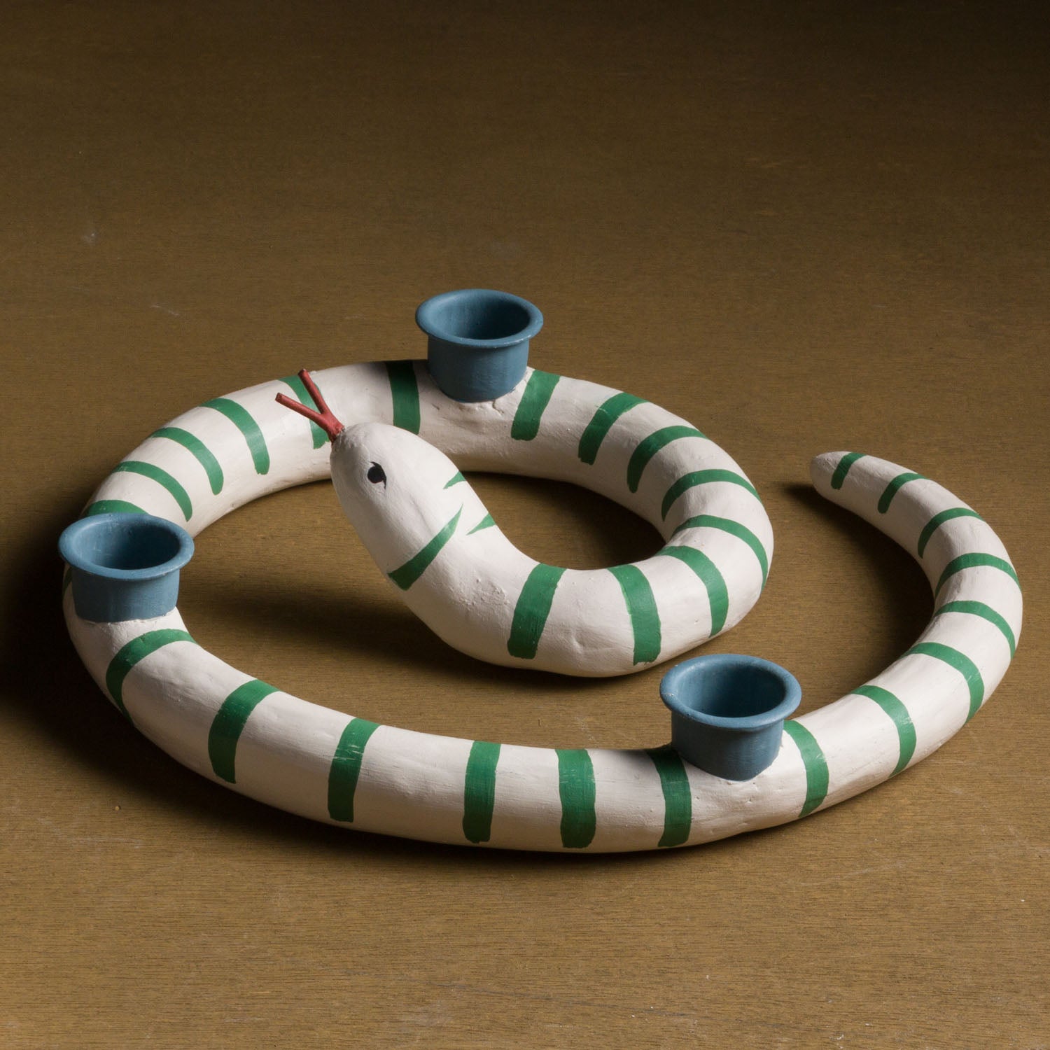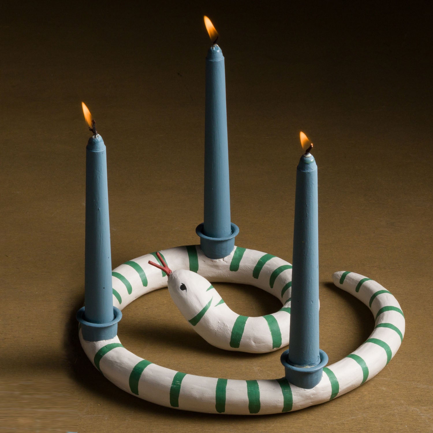 NOODLES CANDLEHOLDER, GREEN - 8.25" L x 7.50"W x 1.50"H / Handpainted Green White / Hand cast resin with metal accents is backordered and will ship as soon as it is back in stock.