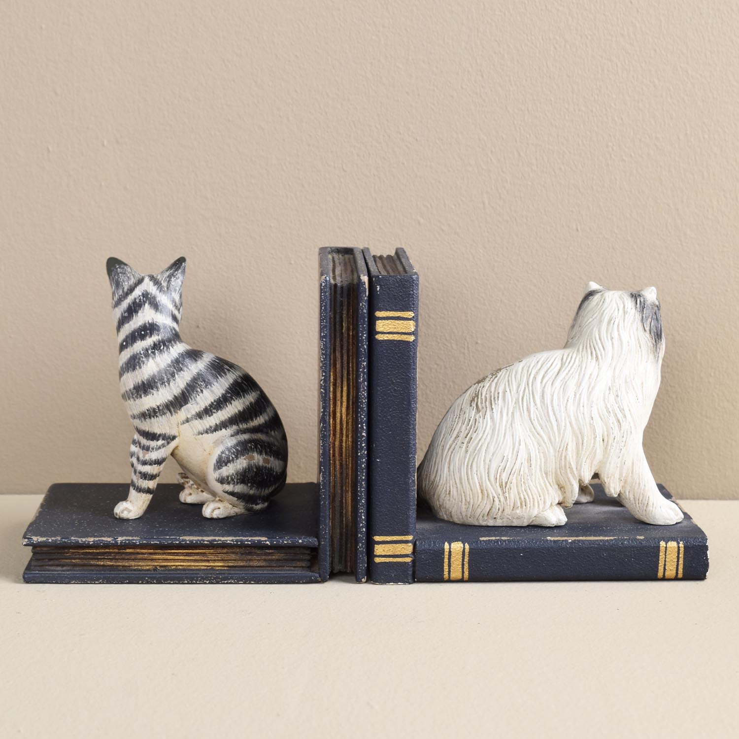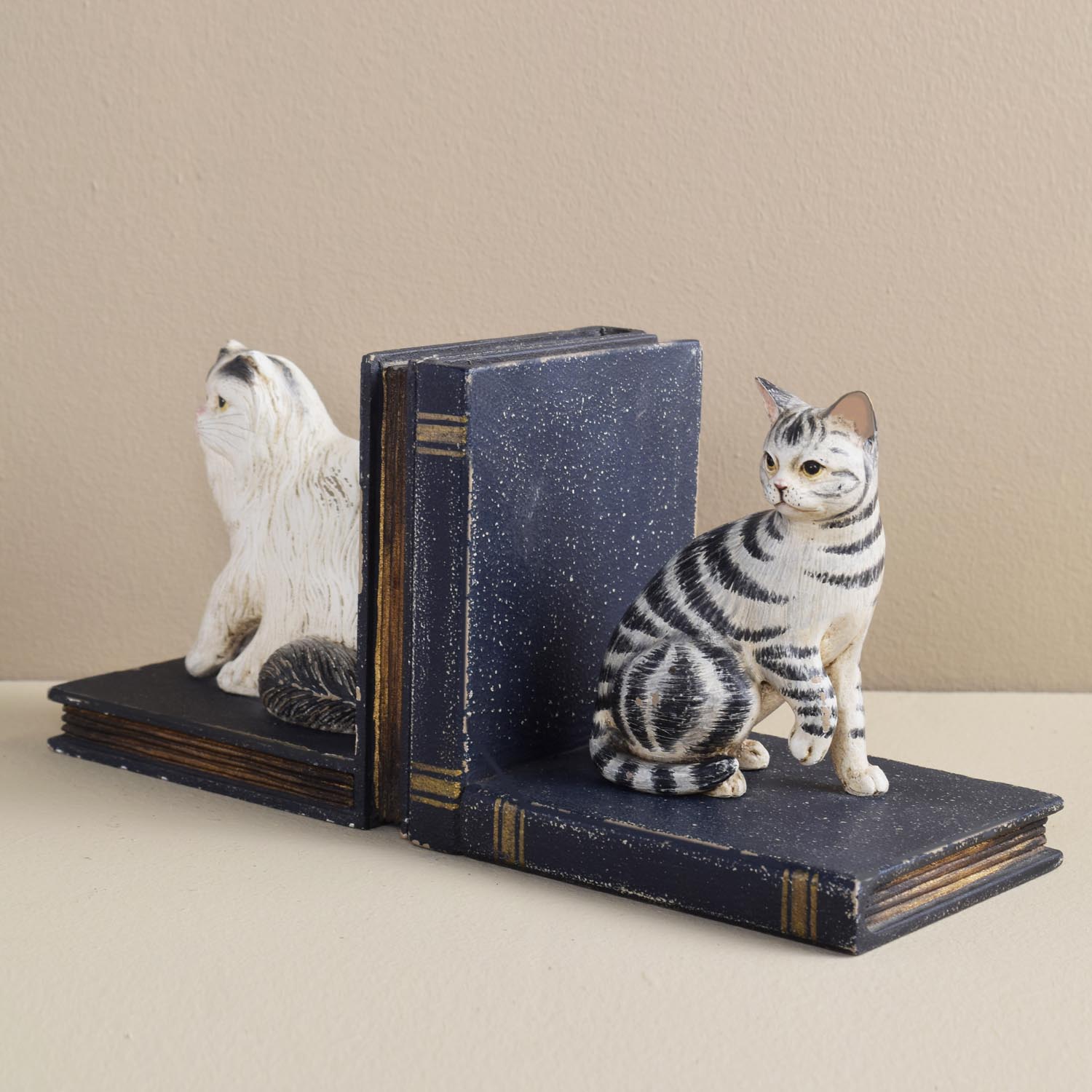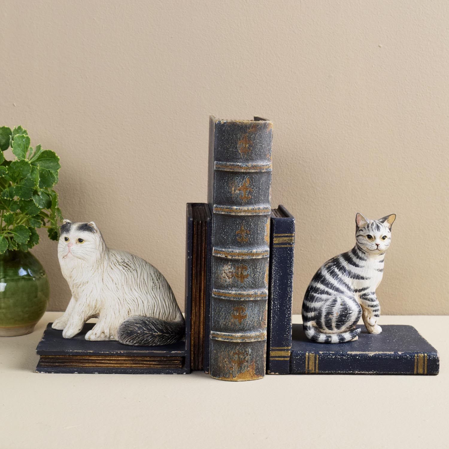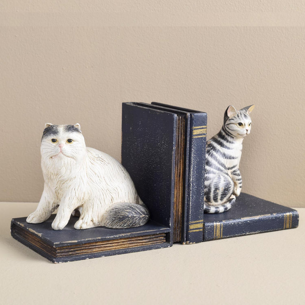 LONG HAIR & TABBY CAT BOOKENDS - Handpainted Biege Silver Gray is backordered and will ship as soon as it is back in stock.