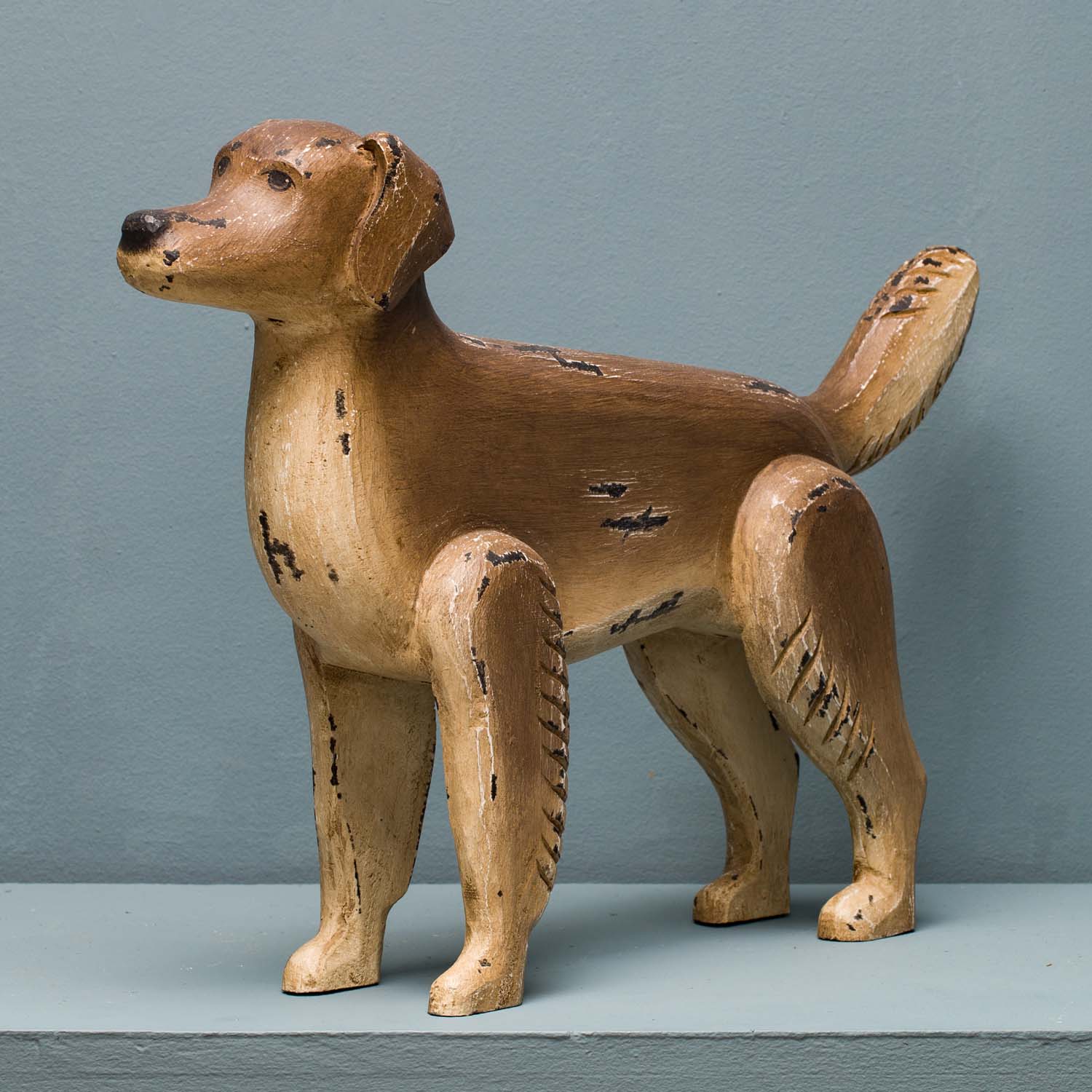 This handsome Golden Retriever is hand carved in a folk Americana style. This is a substantial piece that would make a great gift for fans of this sculptural genre and lovers of the breed alike.