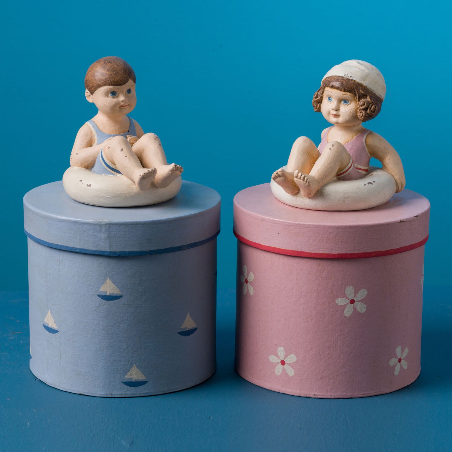 6"L x 6"W x 9.50"H / Handpainted - Pink Beige White Brown / Papermache with resin accents