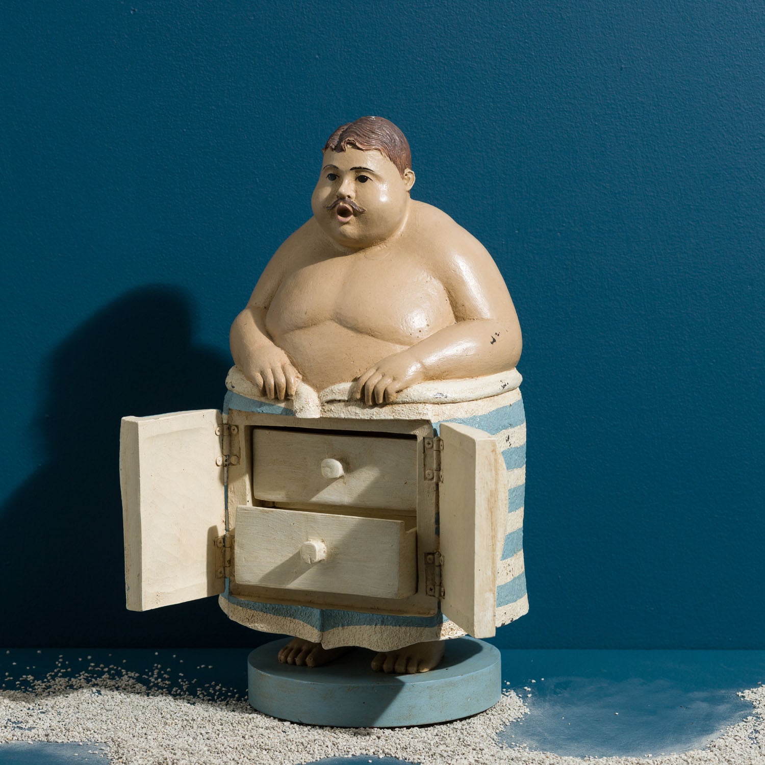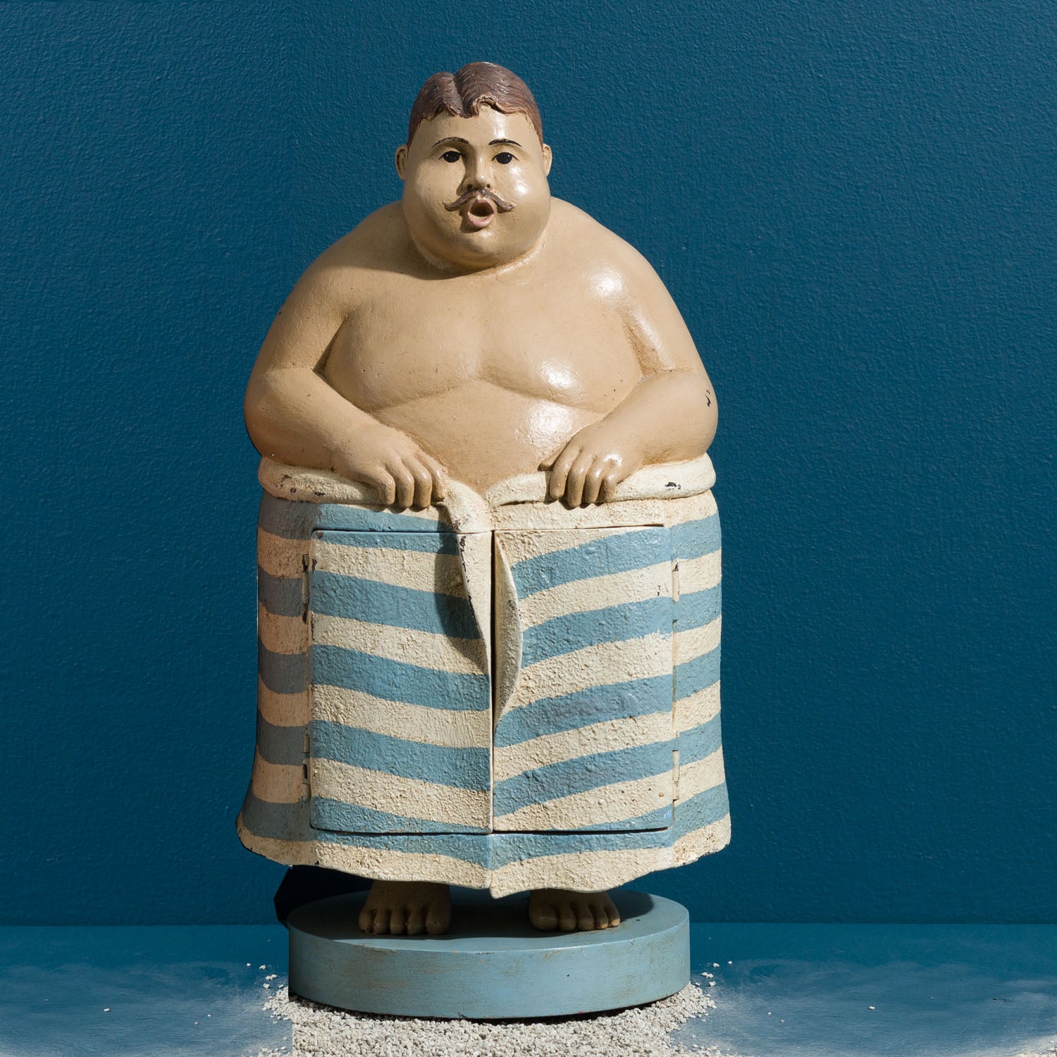 Our cheeky beach goer is hiding a secret under his towel -- it opens up to reveal two small drawers. No one ever has to know what you store in his tummy.