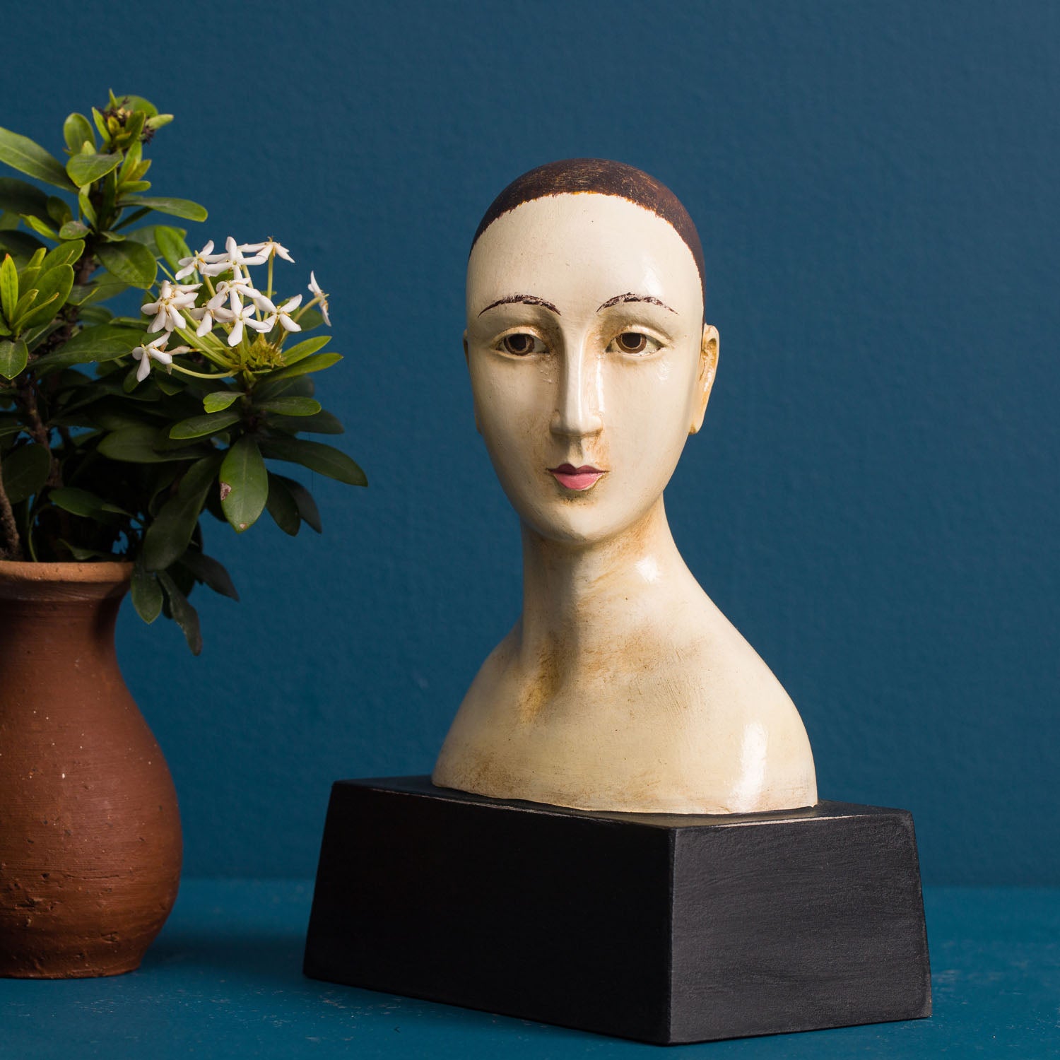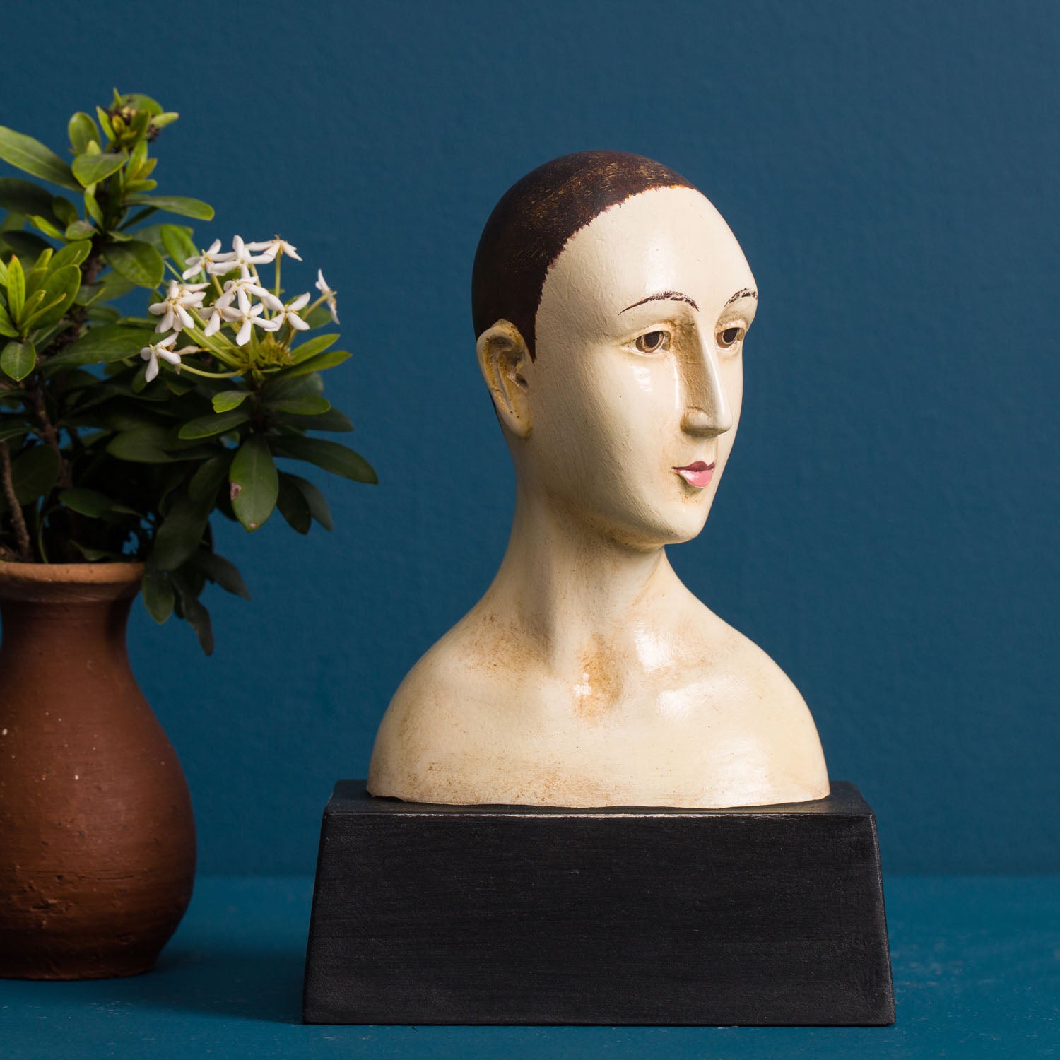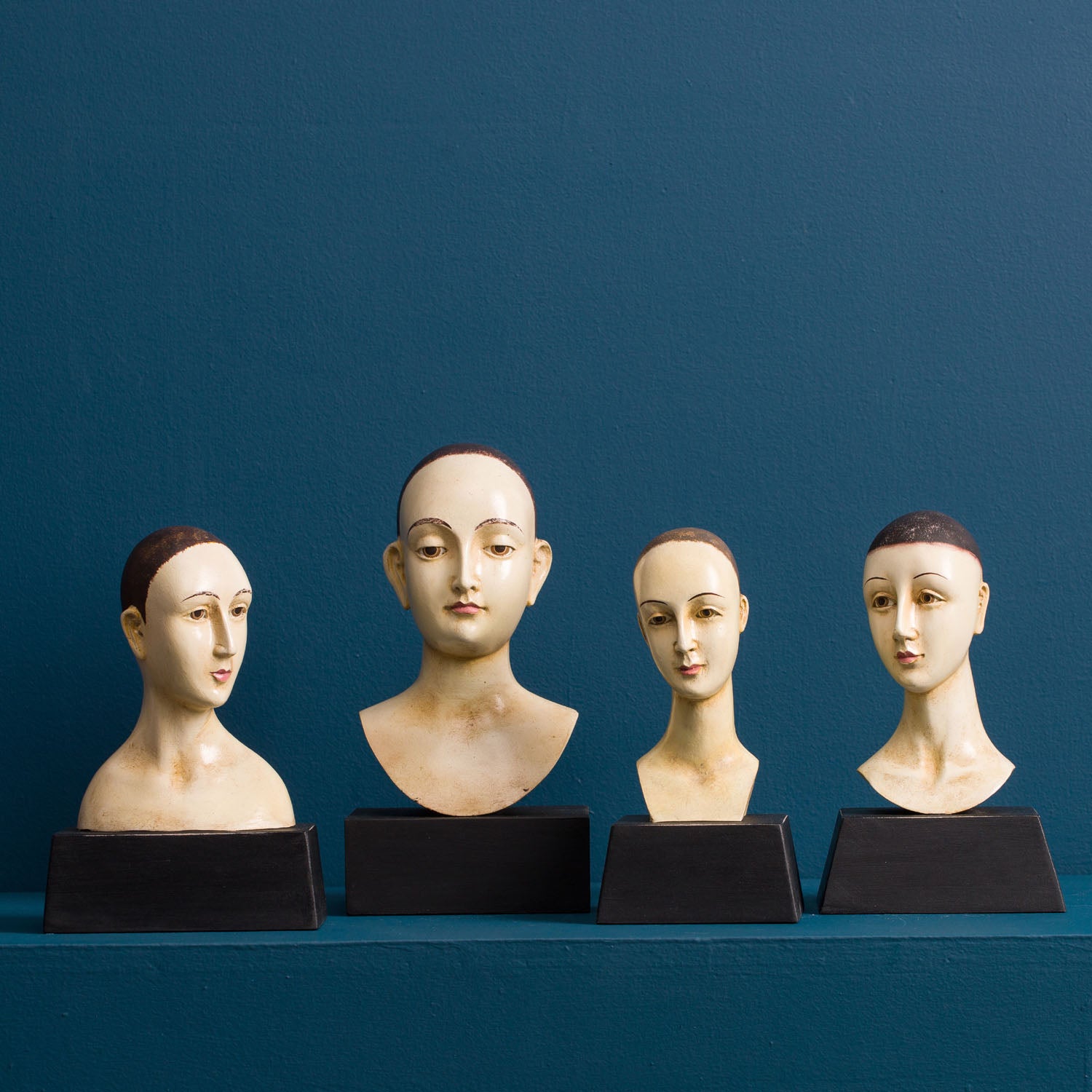 Our classic santos busts are inspired by 18th Century religious statuary. Each is hand painted in a faux ivory finish with an antique patina.