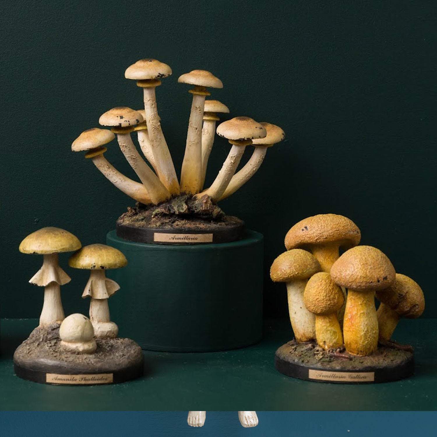 ARMILLARIA GALLICA DECOR - 7"L X 7"W X 7.50"H / Handpainted - Orange Yellow Brown Black / Hand cast resin is backordered and will ship as soon as it is back in stock.