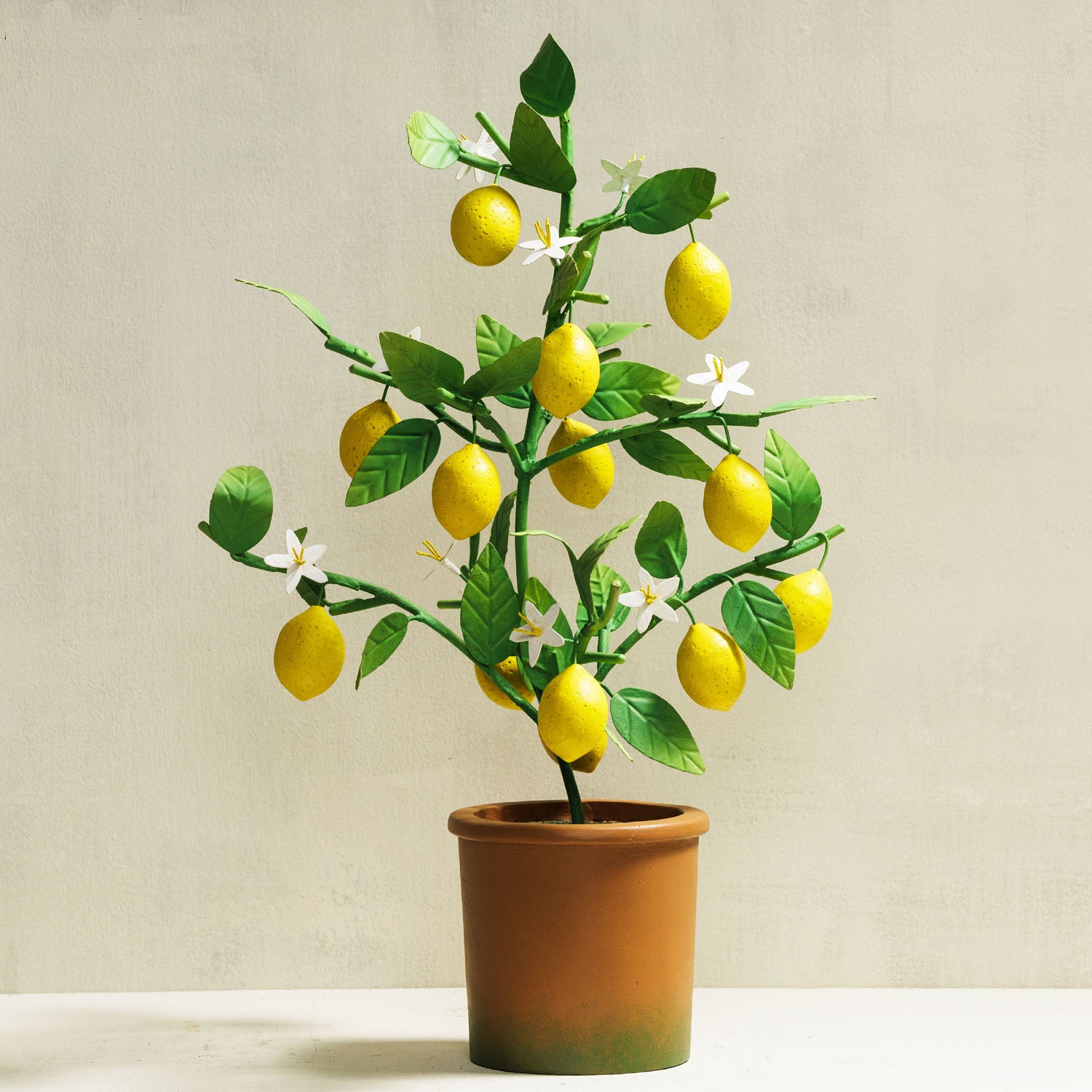 LEMON TREE - 12"L X 12"W X 18.50"H / Handpainted - Green Yellow Brown White / Hand embossed metal with resin accents is backordered and will ship as soon as it is back in stock.