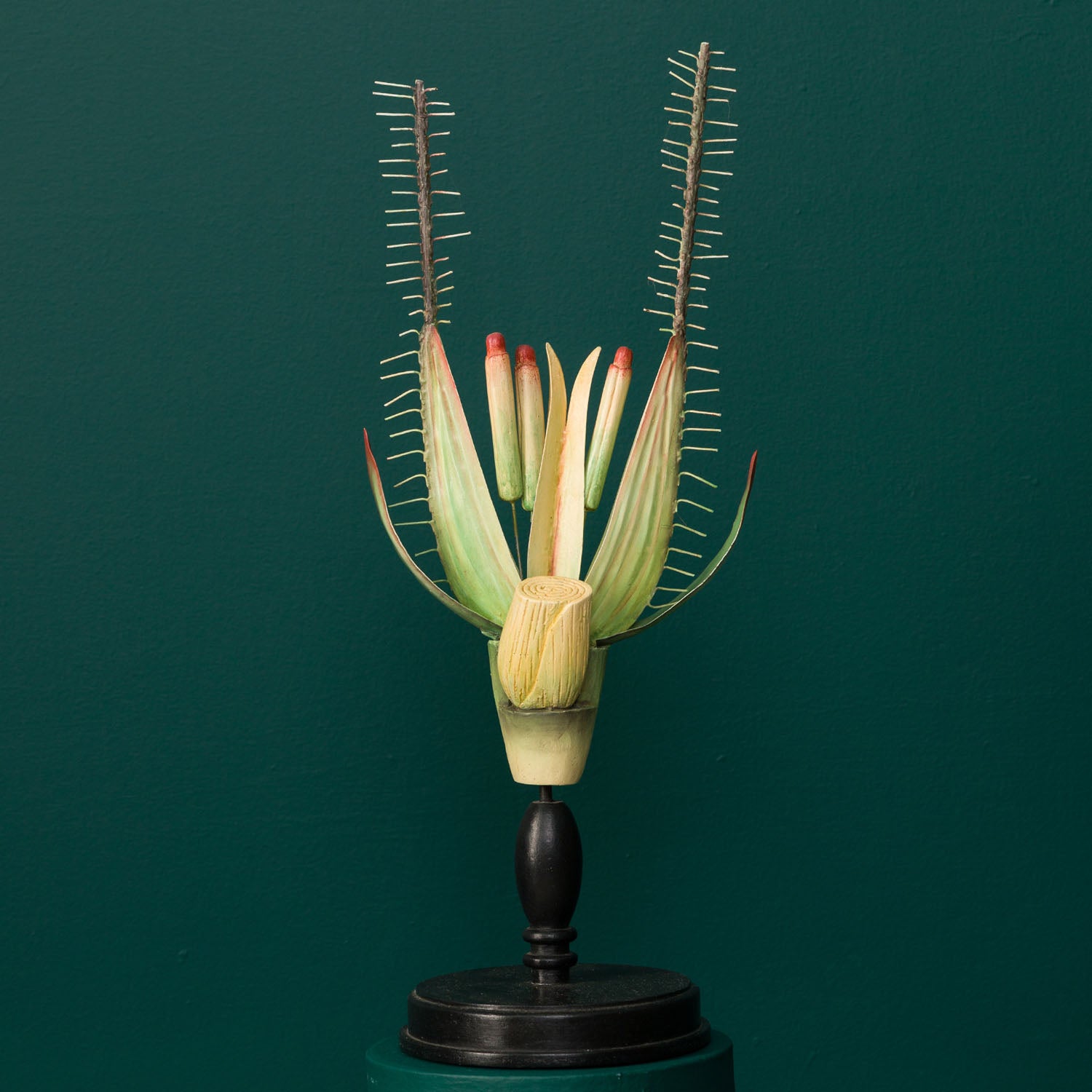 6.50"L x 5.25"W x 16.25"H / Handpainted - Green Yellow Beige Red Black / Hand cast resin with metal and wood accents