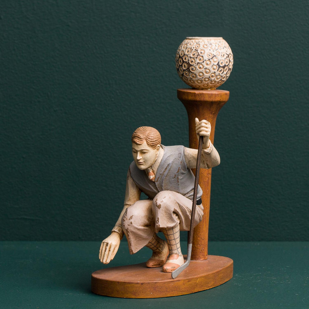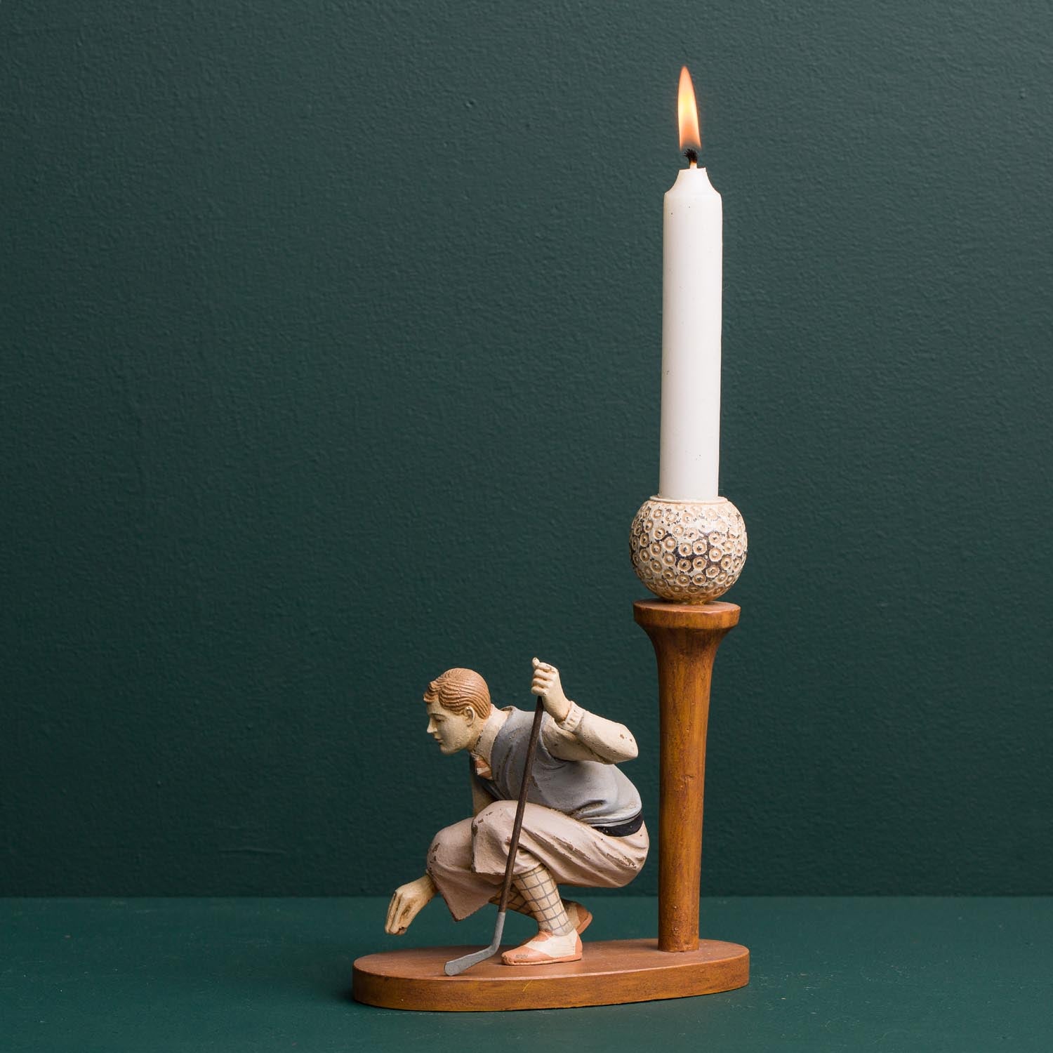 Golf lovers will enjoy the nostalgic style of this candle holder. The golfer figure is clad in clothing inspired by 1930s sporting attire.