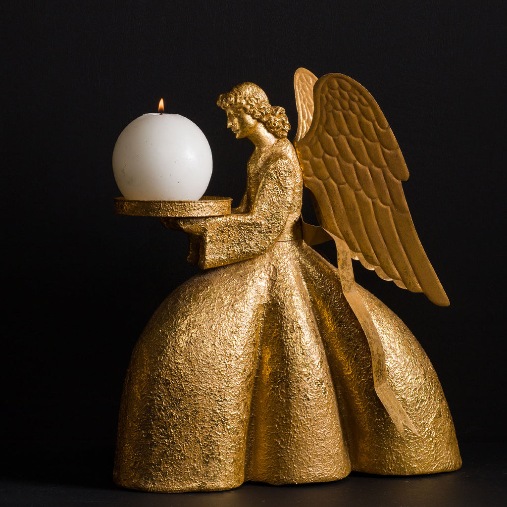 ANGEL MARIANNE TEALIGHT HOLDER, GOLD