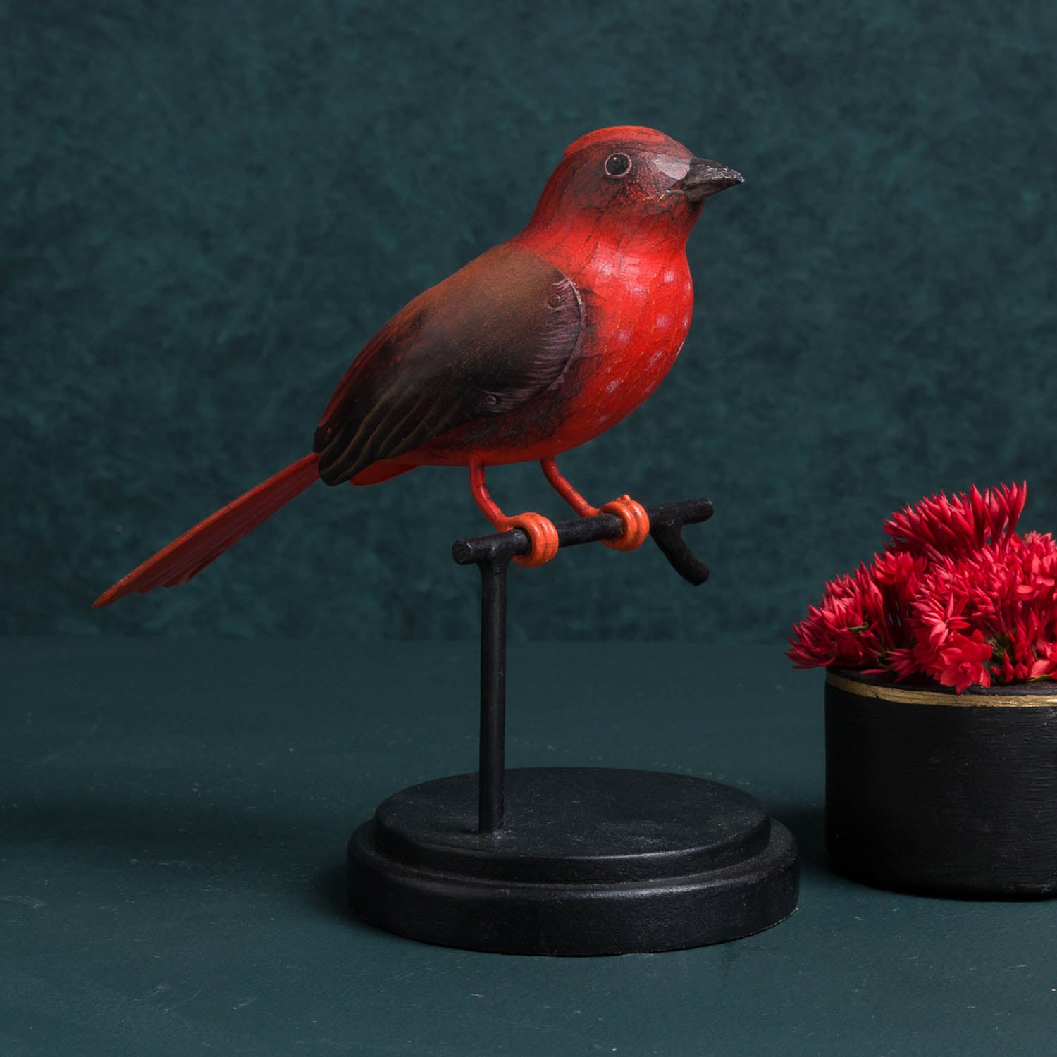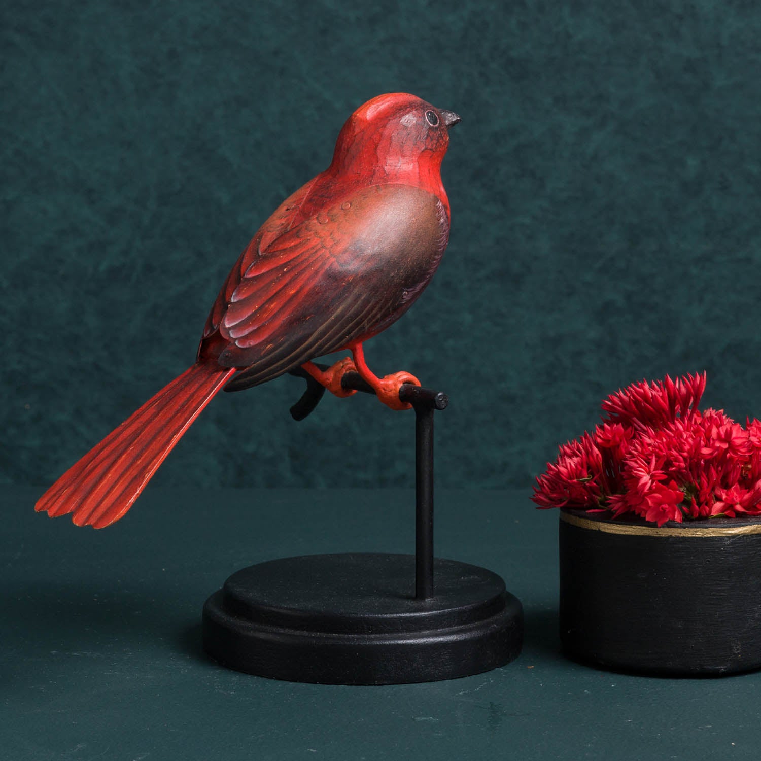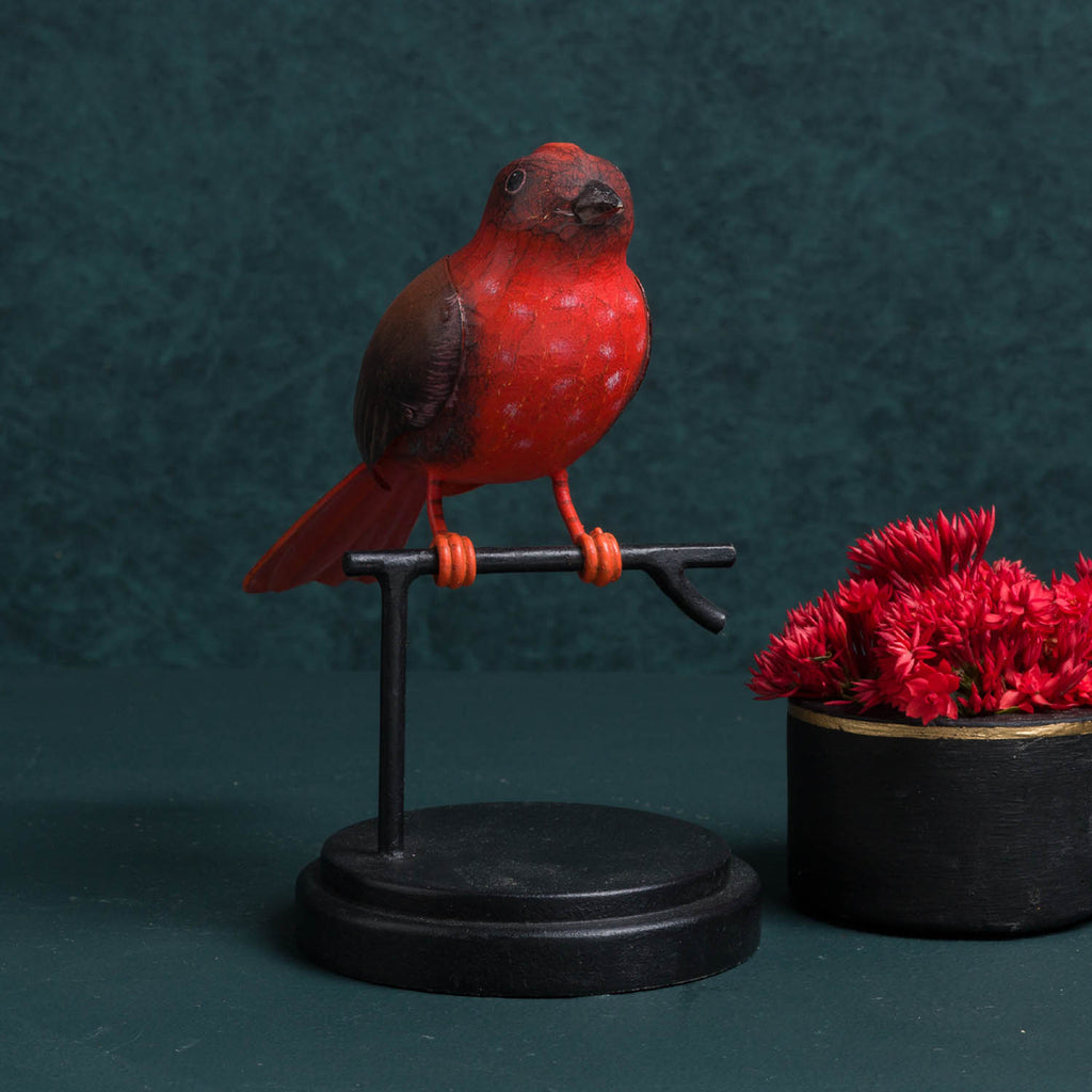Add a pop of color and visual interest to your desktop or shelf with this pretty bird.   A native of the tropical Americas, this bird would make an excellent gift for avian enthusiasts.