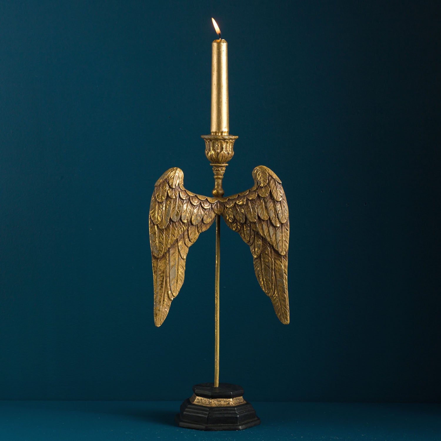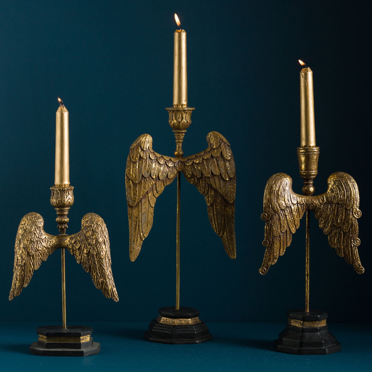 Up the "wow" factor of table holiday settings with a couple of these Reredos Wings candle holders. Each is hand painted with gilt touches. We love to use them in pairs or for even greater visual interest display with both Gabriel and Michael candleholders.