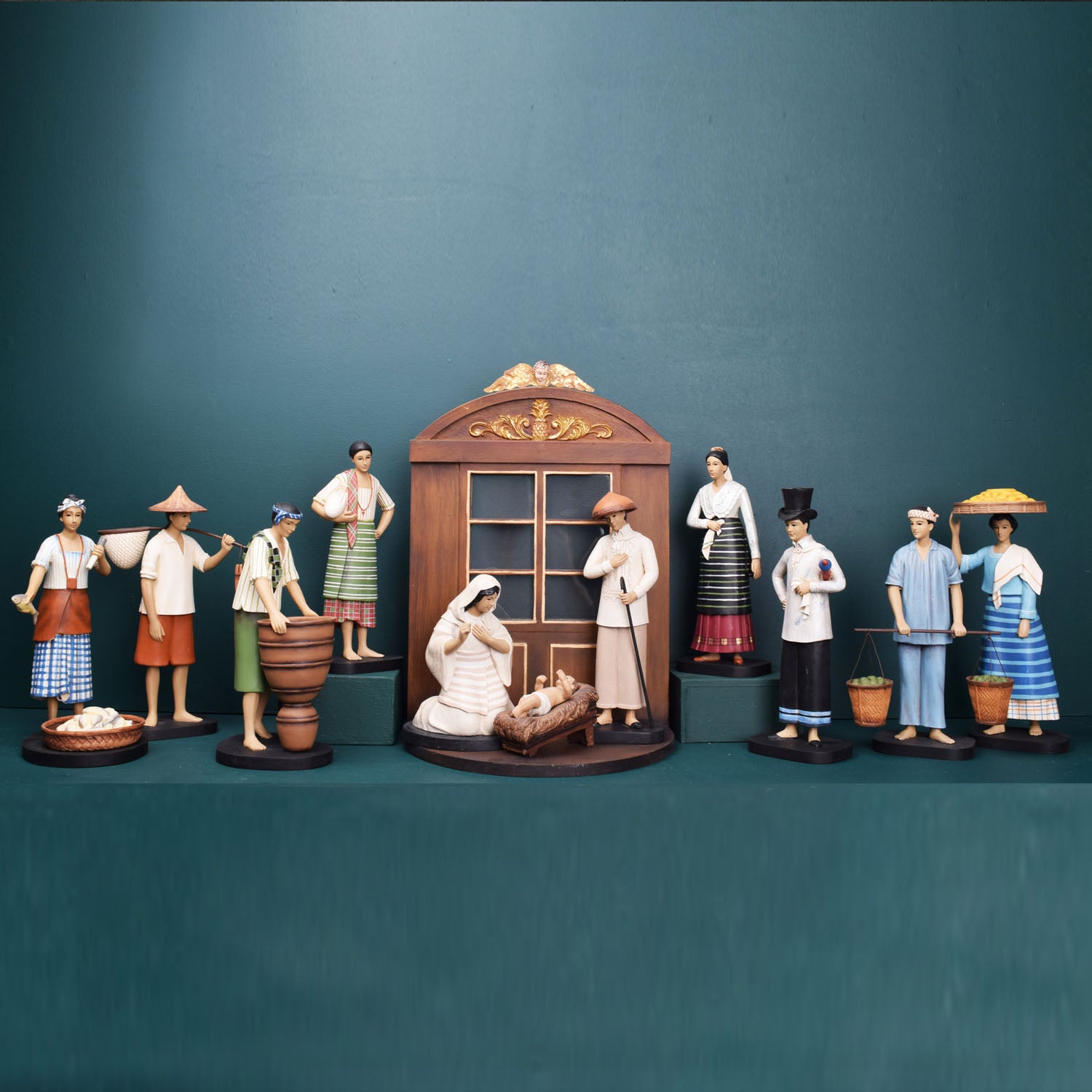 FILIPINO NATIVITY WITH VILLAGERS SET OF 12 - Handpainted - Multi Colors / Hand cast resin with wood and metal accents is backordered and will ship as soon as it is back in stock.