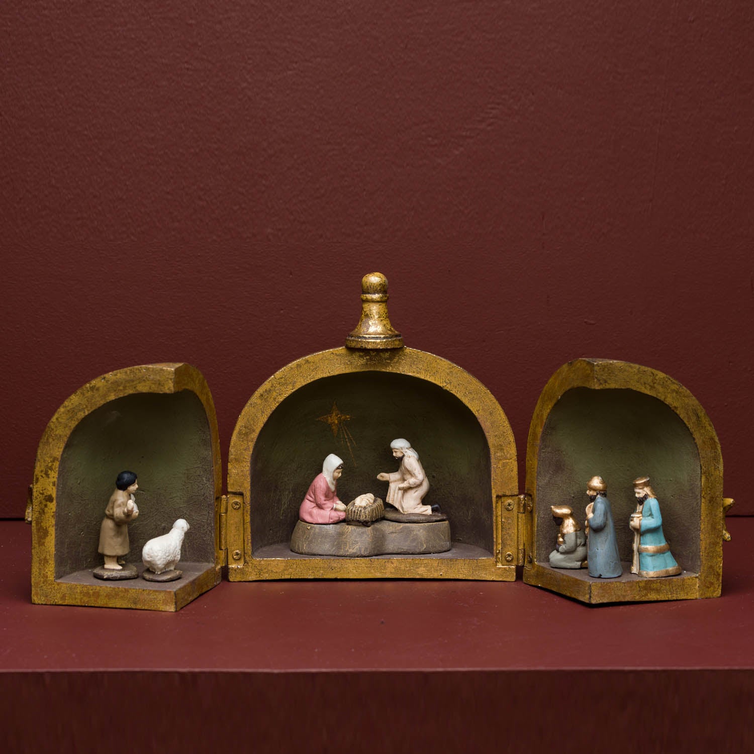 The Siena Mini Nativity is a unique and charming decoration that will provide festive cheer throughout the holiday season. The beautiful hinged gold dome opens to reveal a delightful nativity scene in miniature form. Perfect for holiday decorating or displaying year round.