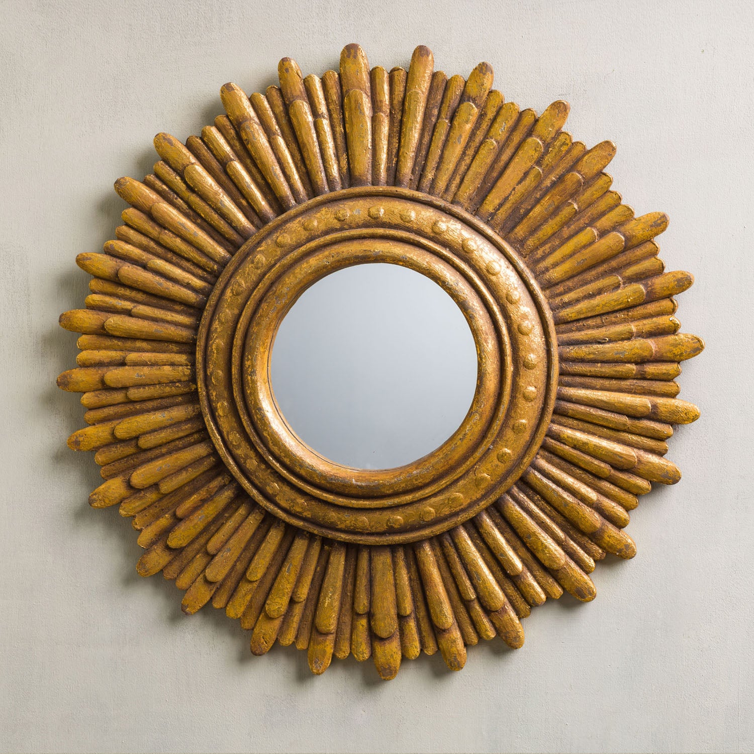 QUIROZ MIRROR FRAME - 20.00"L x 1.75"W x 20.00"H / Handpainted Gold / Hand cast resin with mirror and wood acents is backordered and will ship as soon as it is back in stock.