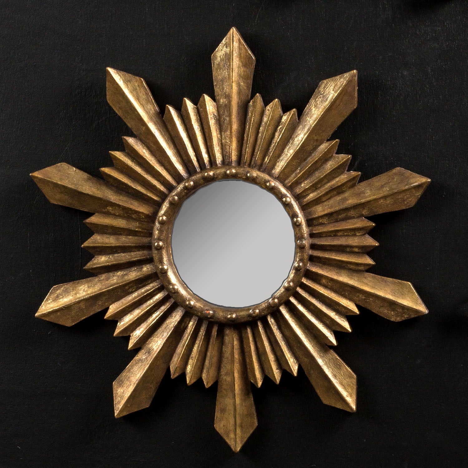 SANTISIMA SINAG-ARAW MIRROR FRAME - 19.875"L x 1.50"W x 19.875"H / Handpainted - Gold Brown / Hand cast resin with mirror and wood accents is backordered and will ship as soon as it is back in stock.