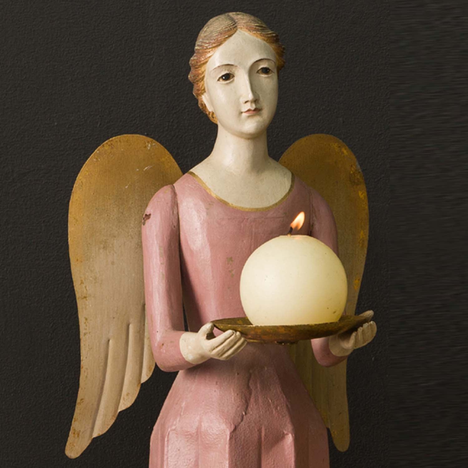 Bring some serenity and light into your home with this decorative candle holder. Our Angel Marie was inspired by french statuary from the 18th century. Her face and hands are hand painted in an ivory finish and her skirt and wings are hand tooled metal.