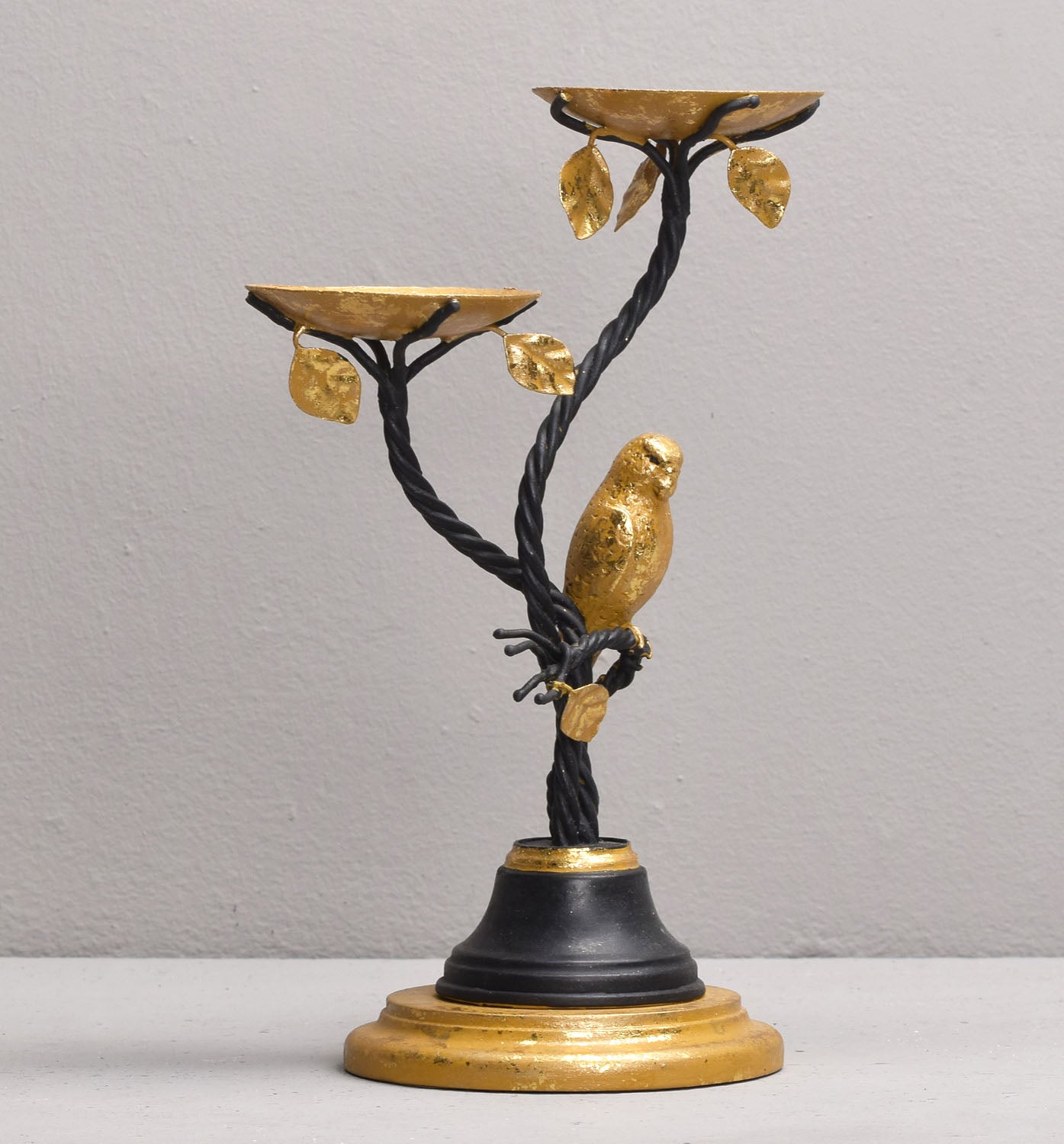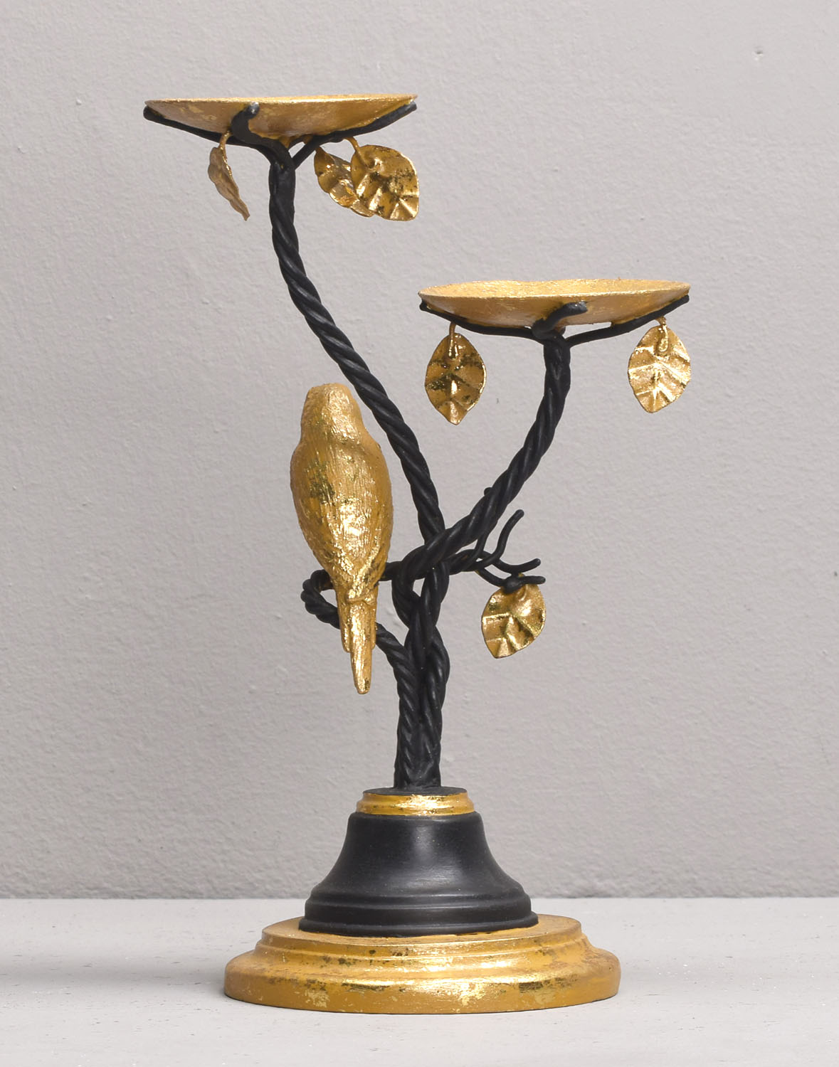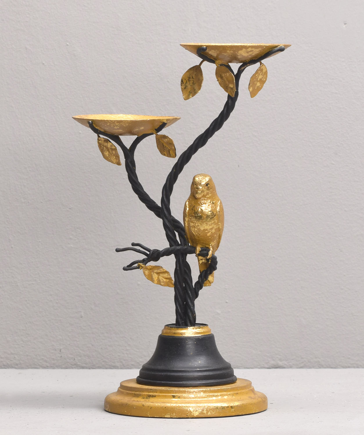 BUDGERIGAR TEA LIGHT HOLDER, BLACK & GOLD