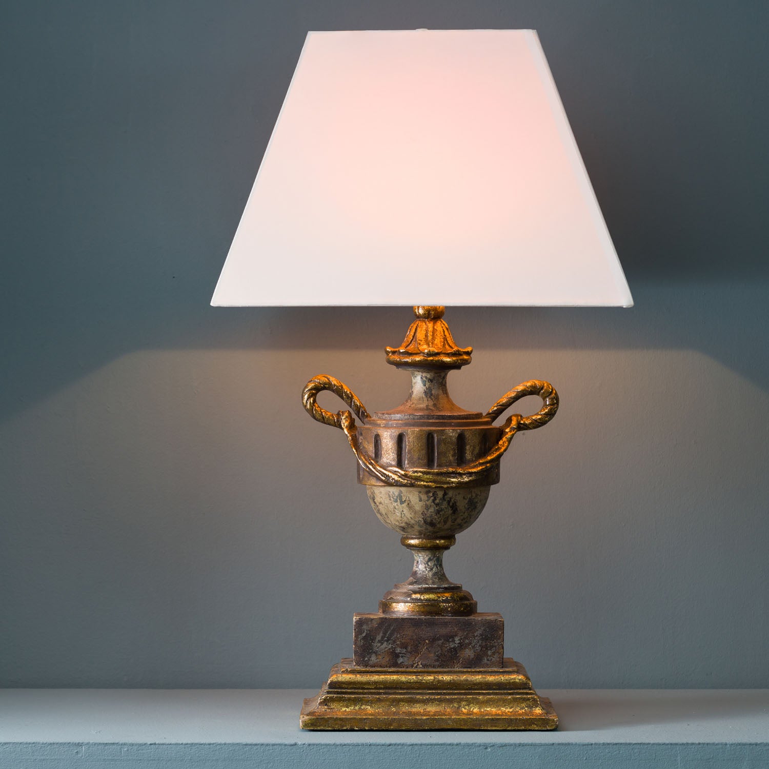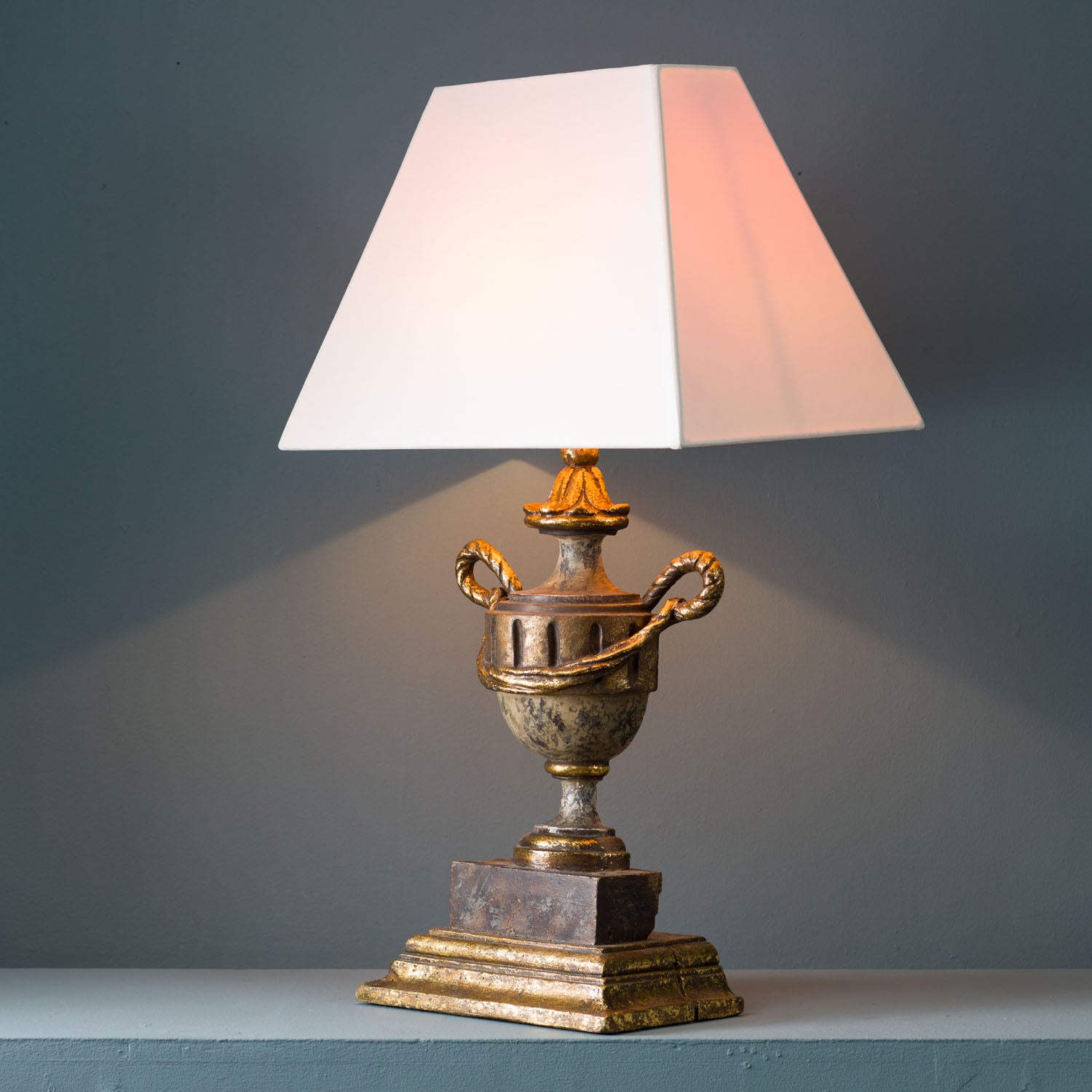 Hand finished to look like antique gilt wood, our Hammon Lamp would look wonderful in a study or living room. Comes with a cream colored shade.