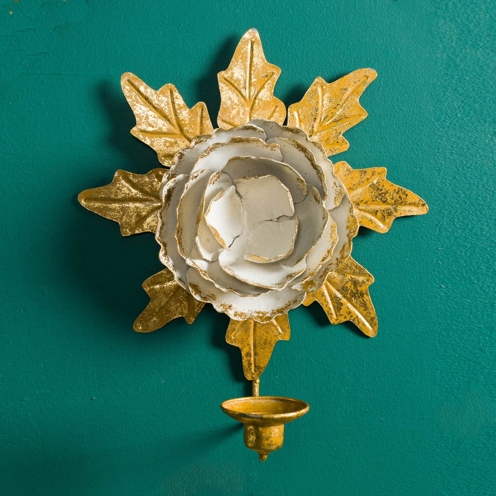 PEONY SUNBURST SCONCE., WHITE & GOLD