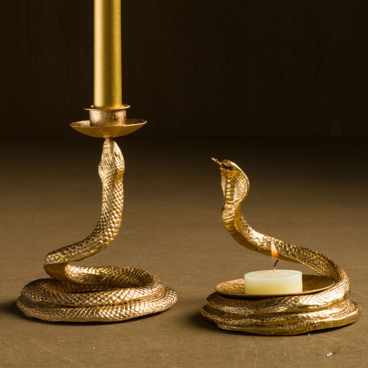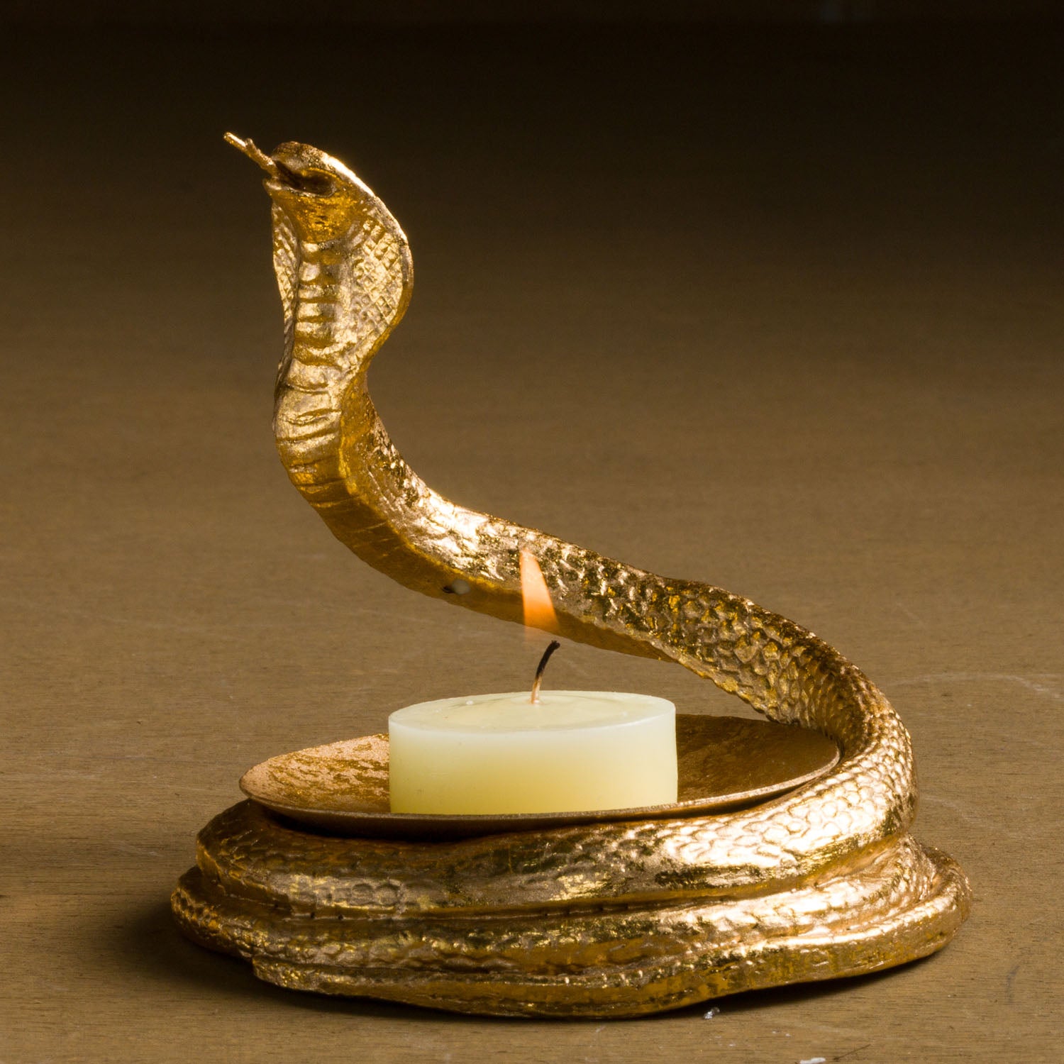 COBRA WITH DISH, GOLD - 4.25"L x 4"W x 4"H / Handpainted Gold / Hand cast resin is backordered and will ship as soon as it is back in stock.