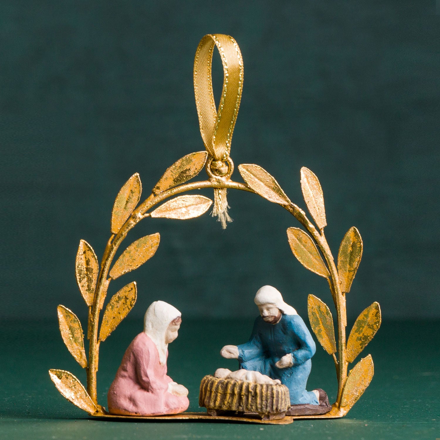HOLY FAMILY IN OLIVE WREATH ORNAMENT