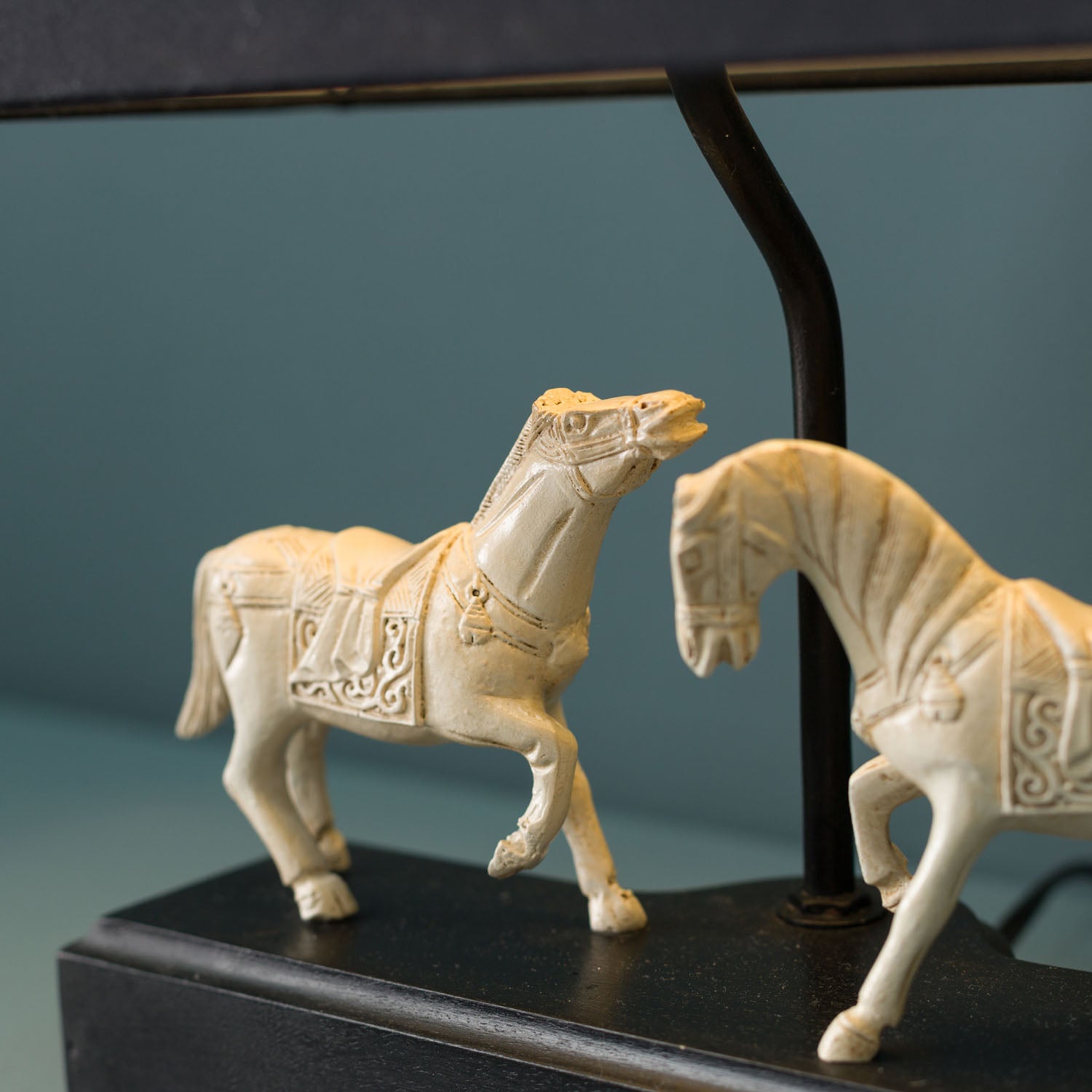 Materials: Hand cast resin on wood base, metal, canvas shade.