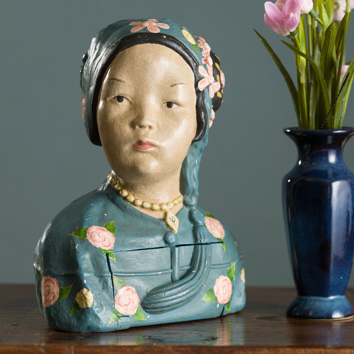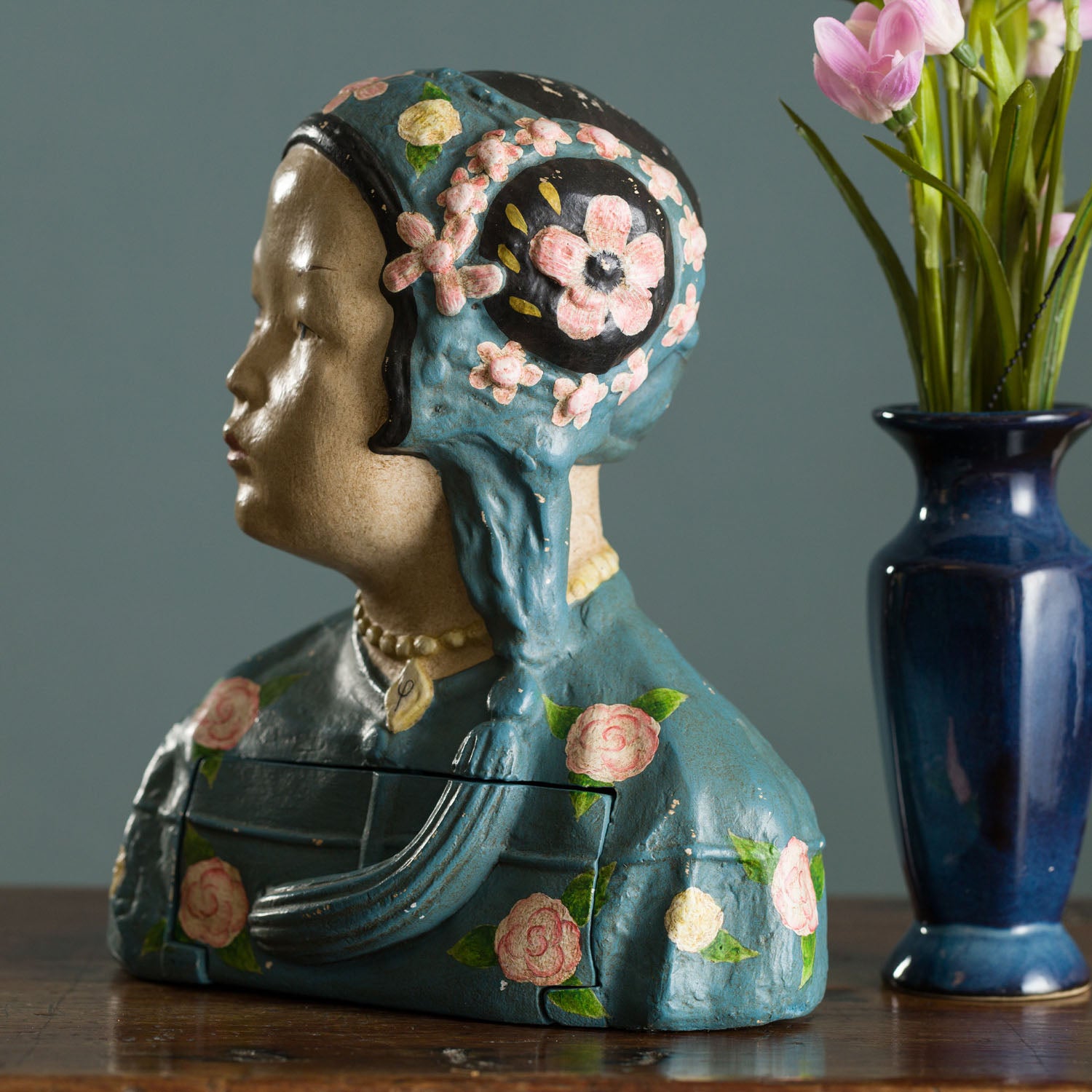 LILY BUST DRAWER, BLUE - 8"L x 4.50"W x 9.50"H is backordered and will ship as soon as it is back in stock.