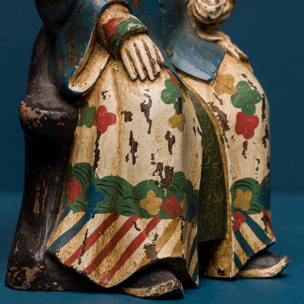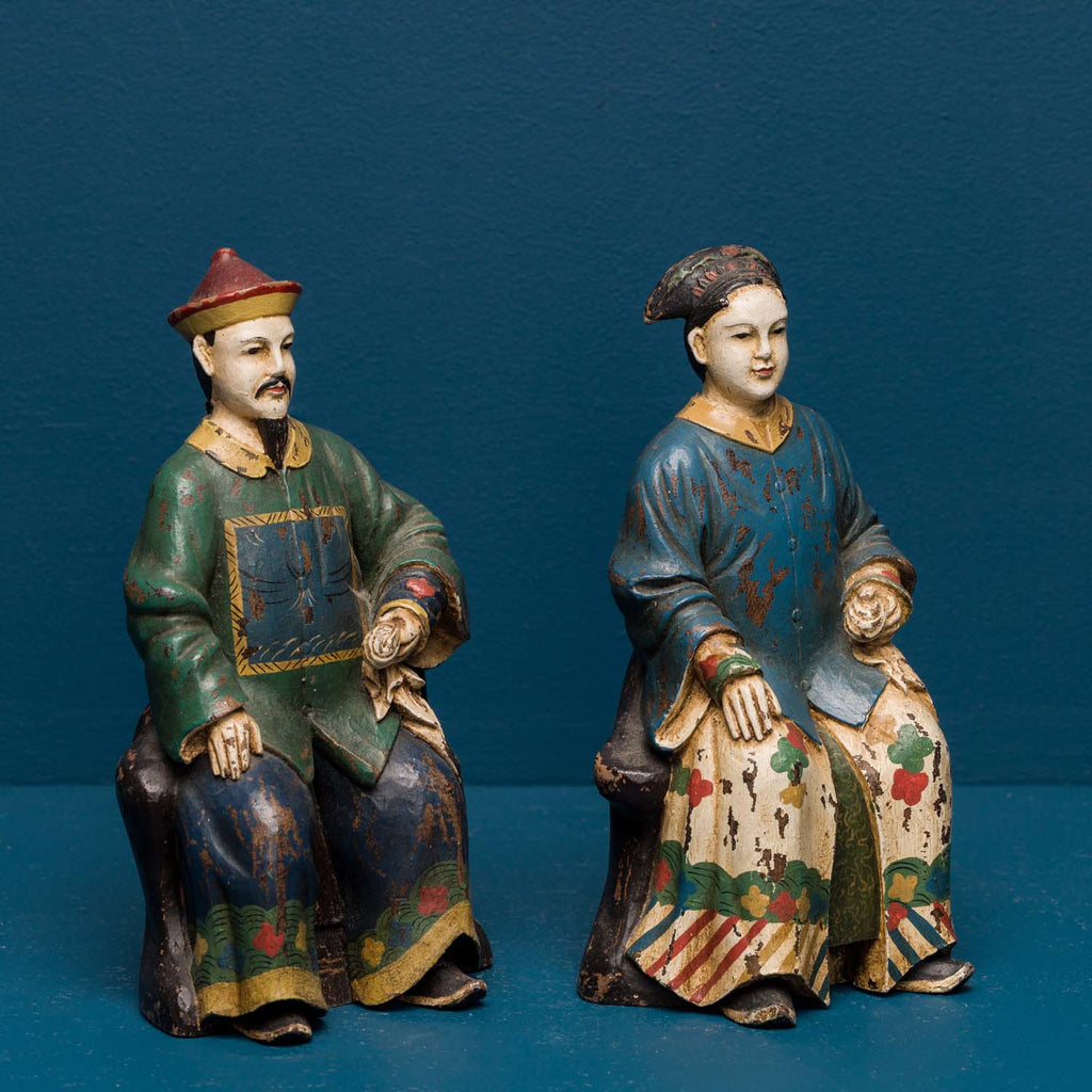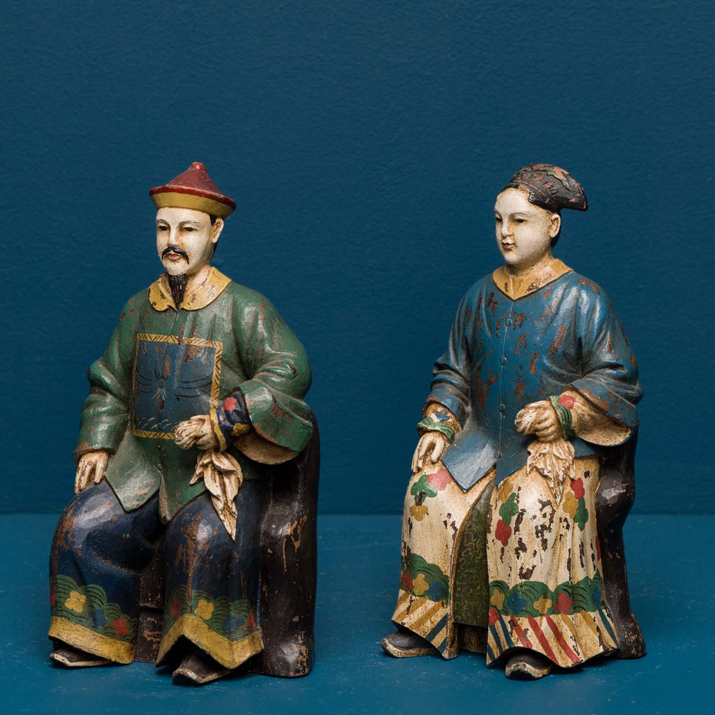 These figures reference paintings and sculpture from the reign of the Chinese emperor Qianlong and the couple's richly detailed robes reflect the great prosperity and artistry of that time. This set looks fabulous on a shelf display and would be a memorable wedding or anniversary gift.