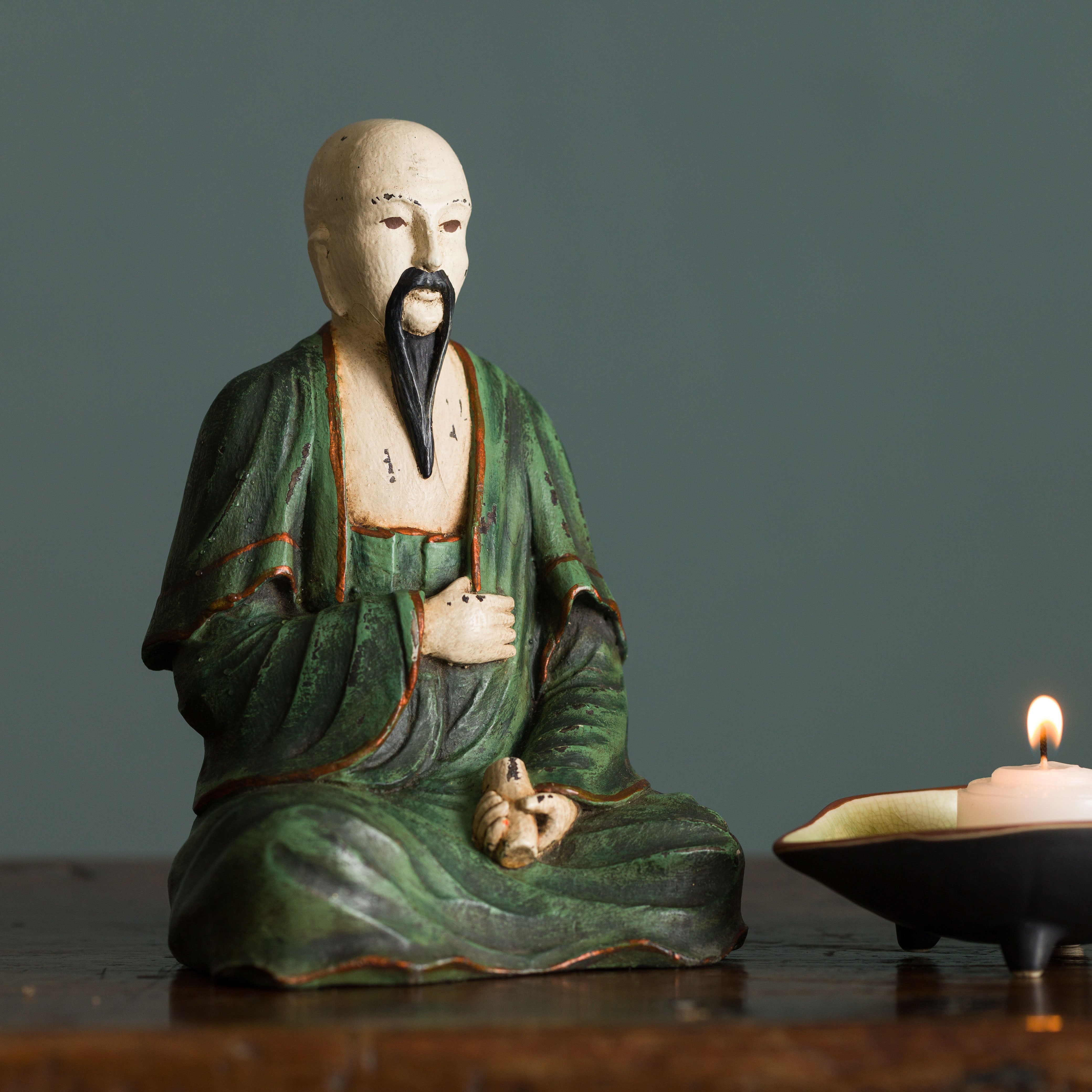 This Sitting Lohan figurine brings with him an air of meditative contemplation and serenity. Great for desktops, consoles or bookshelves. Each piece is hand finished with an antique patina.