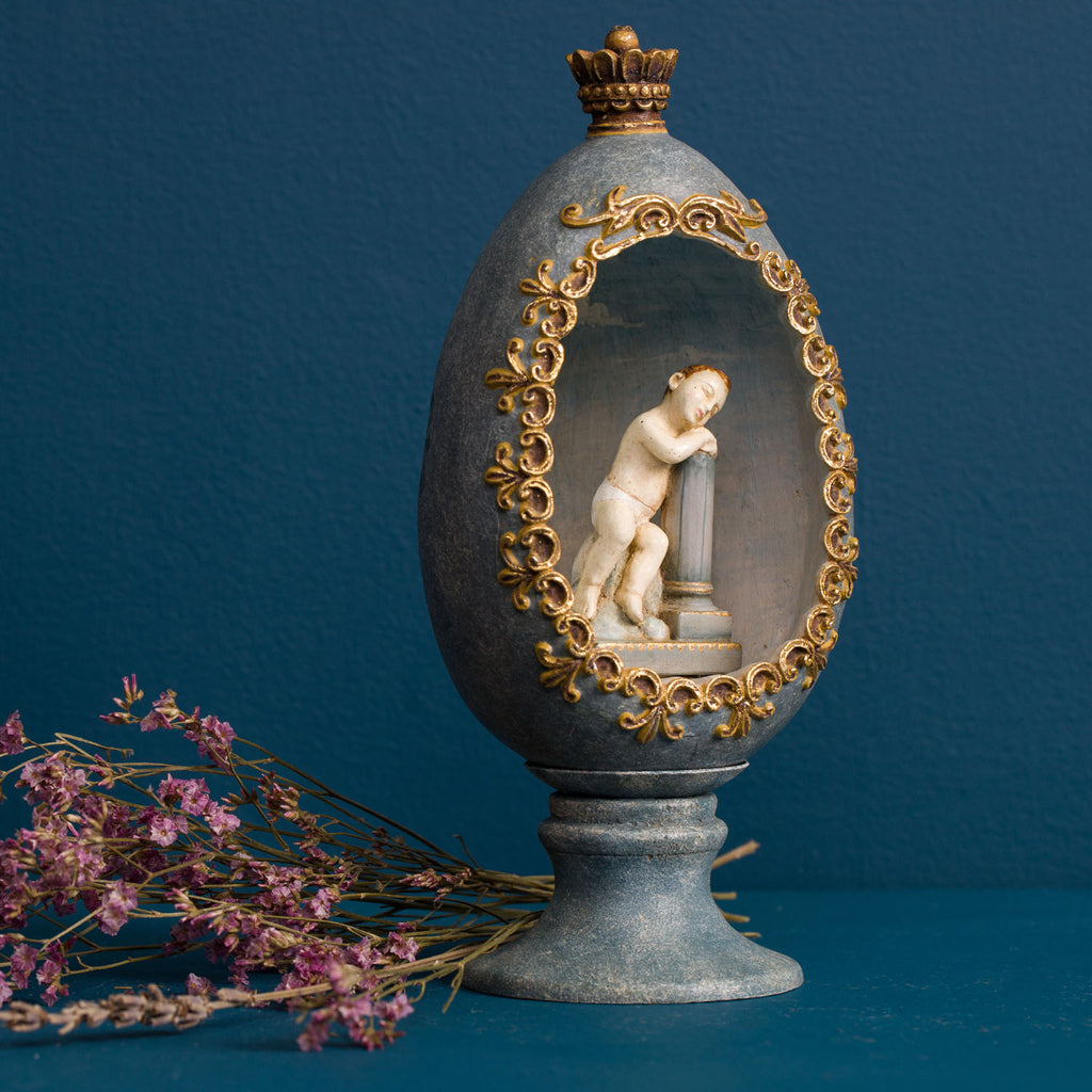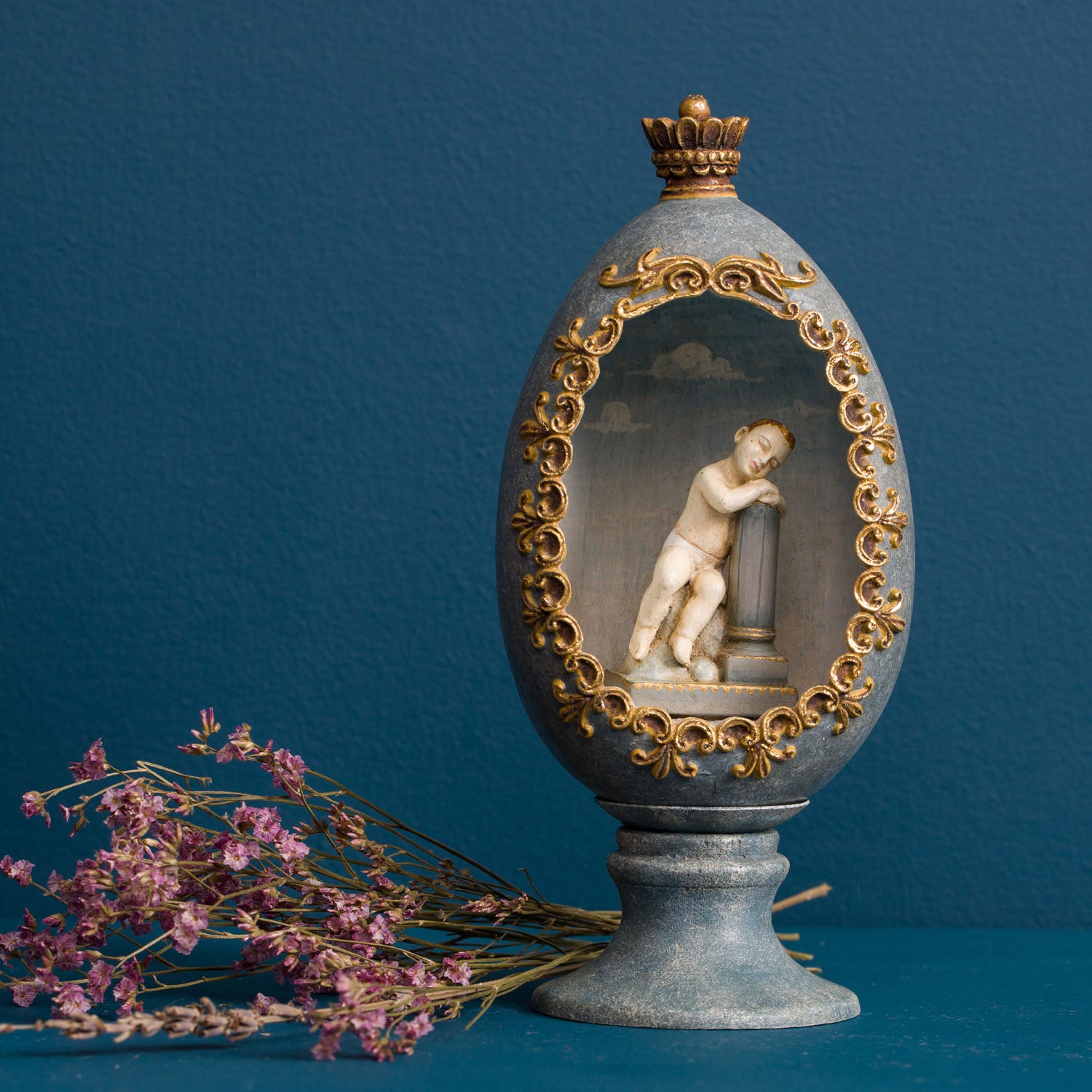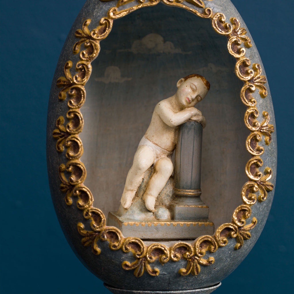 This charming objet features a sleeping Santo Niño ensconced in an ornate egg. Each piece is painted by hand. Our little niño would make a lovely and unexpected gift.