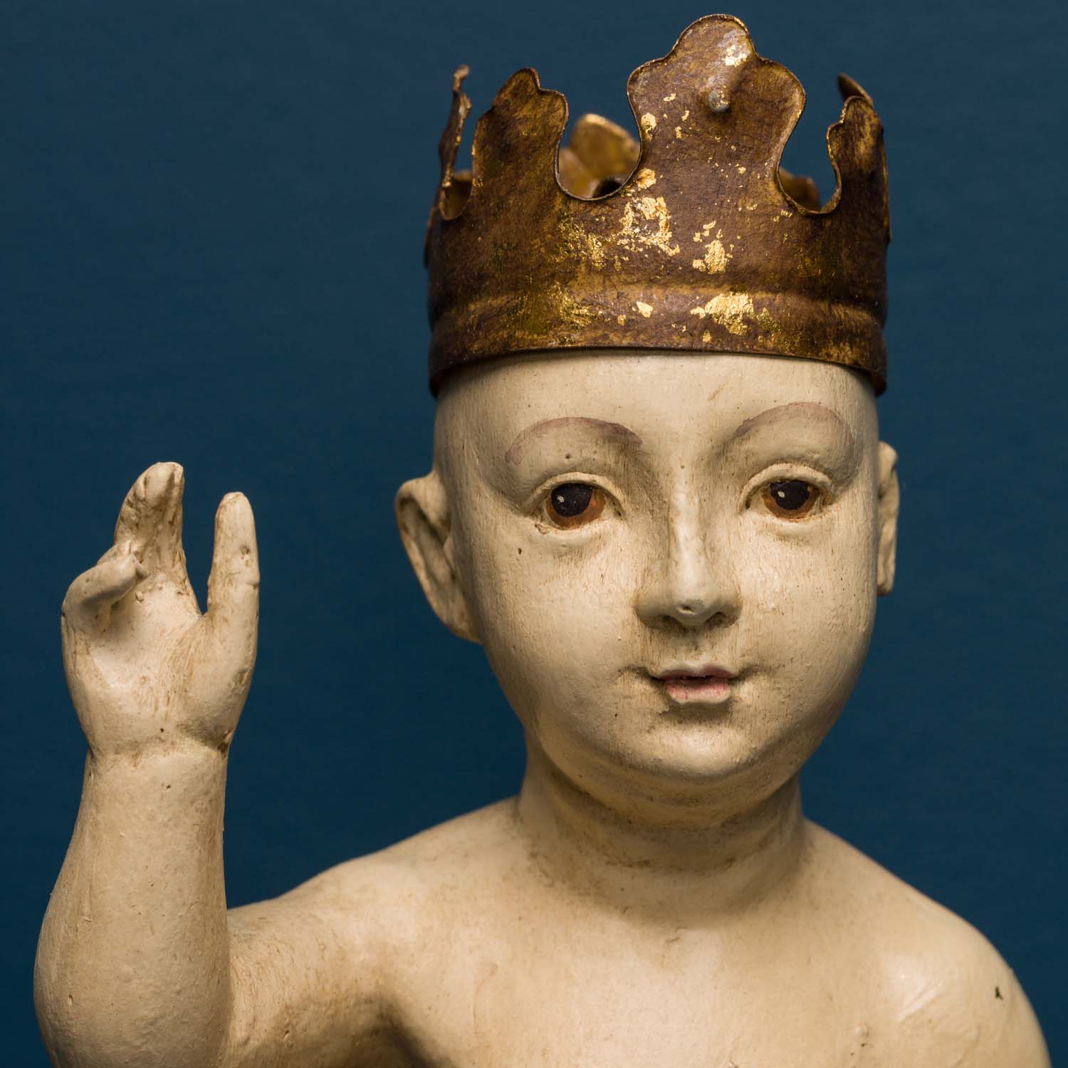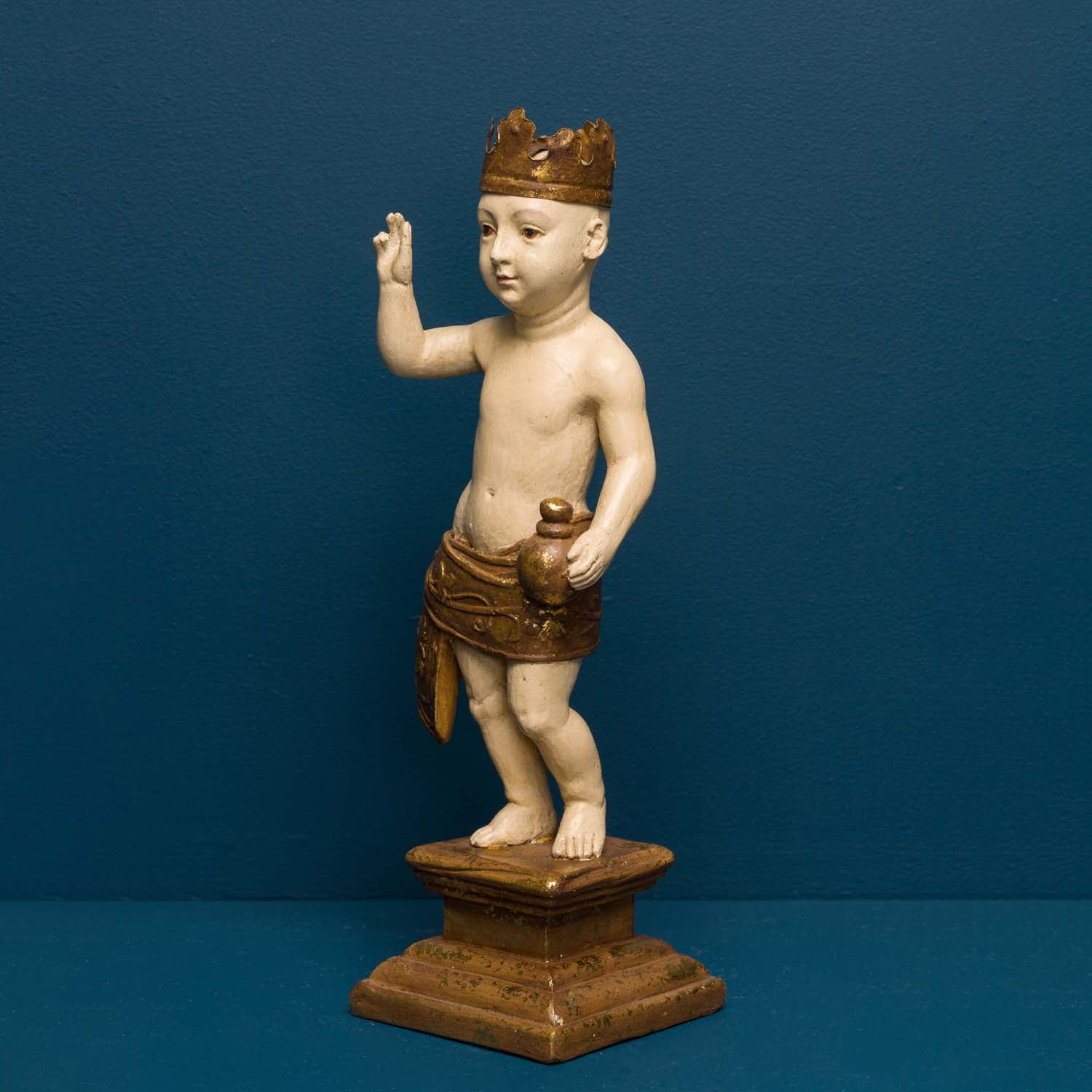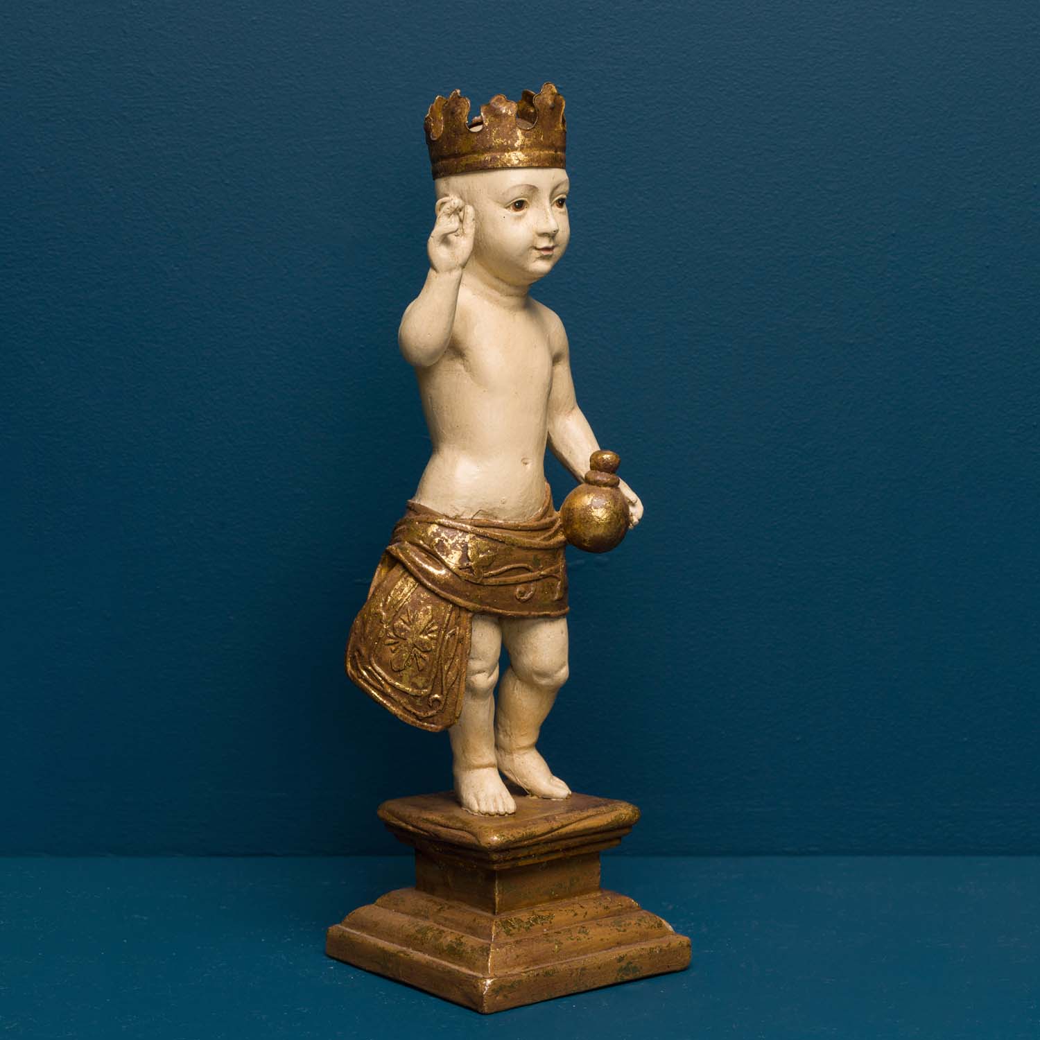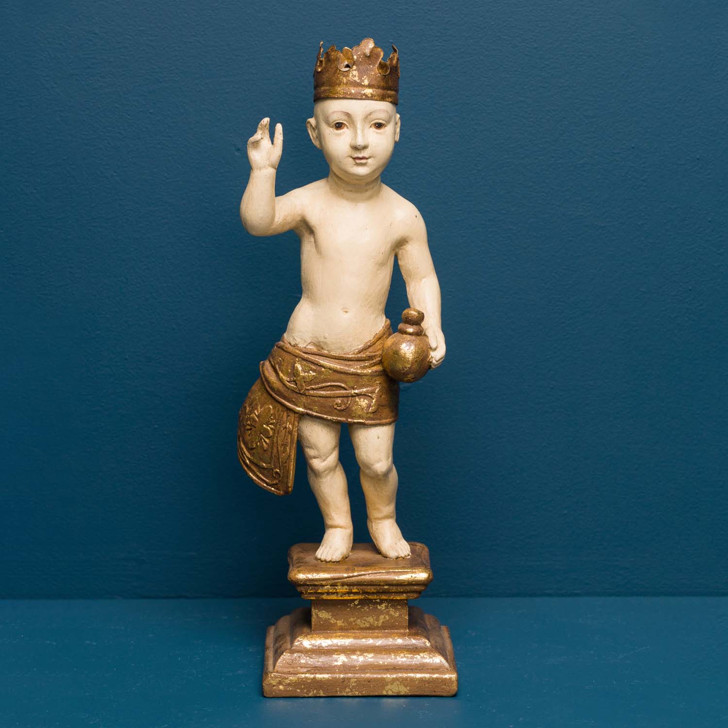 A perennial best seller our Santo Niño de Madrid is hand painted in an ivory like finish. His serene gaze brings a sense of calm into whatever environment he is placed.