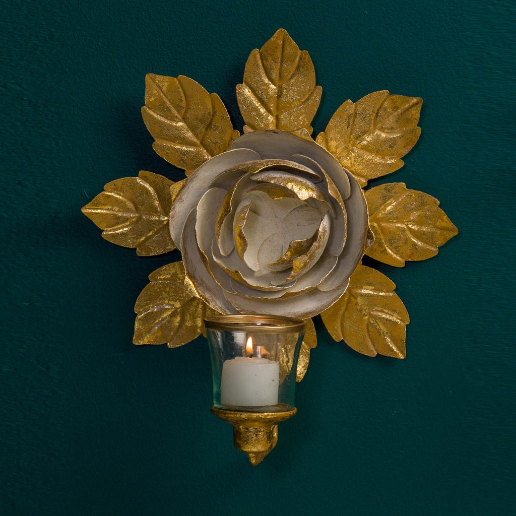 PEONY SUNBURST SCONCE., WHITE & GOLD